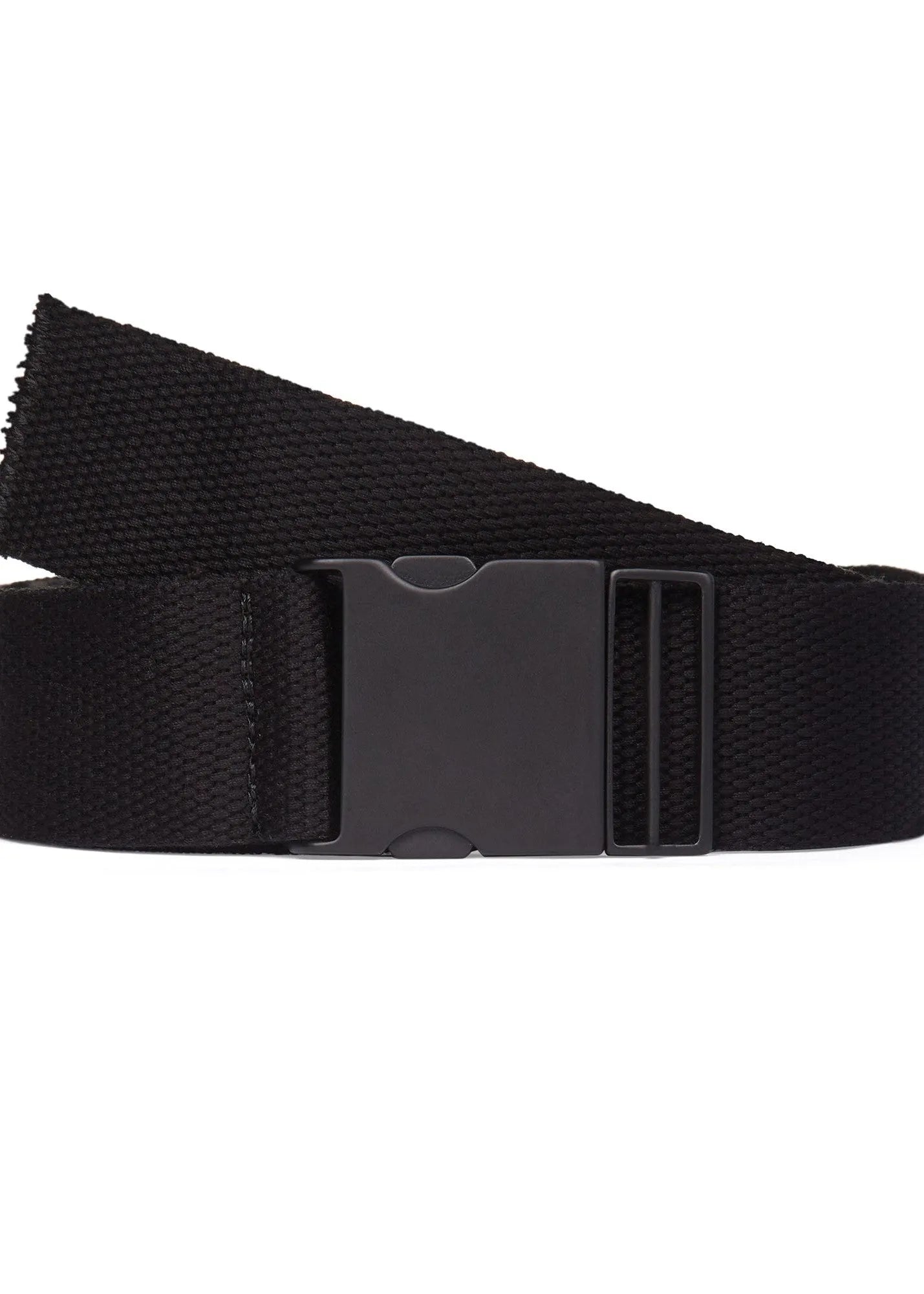 Plastic-free belt with a Tencel™ weave strap fastened to a solid nickel-free metal clasp.
