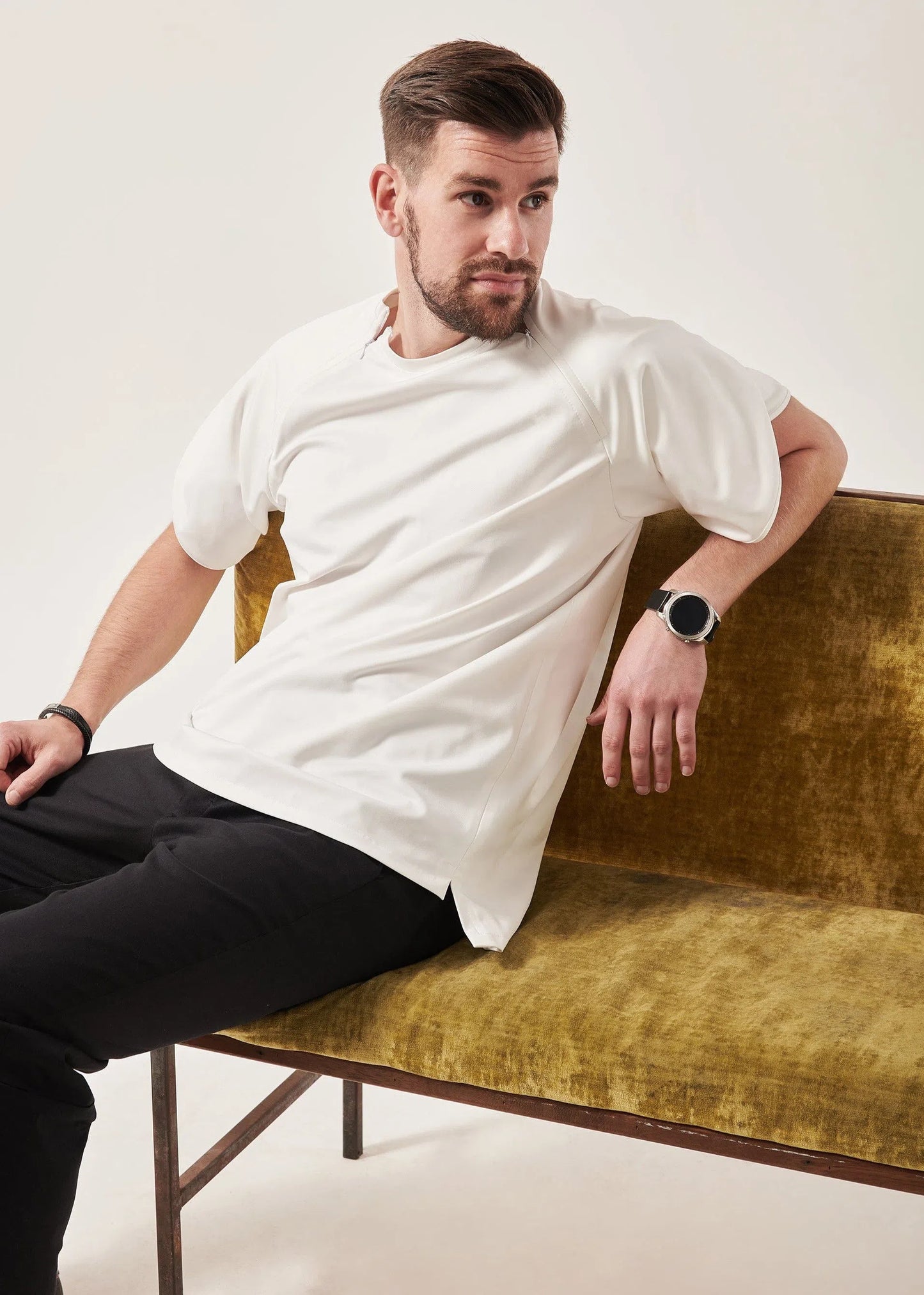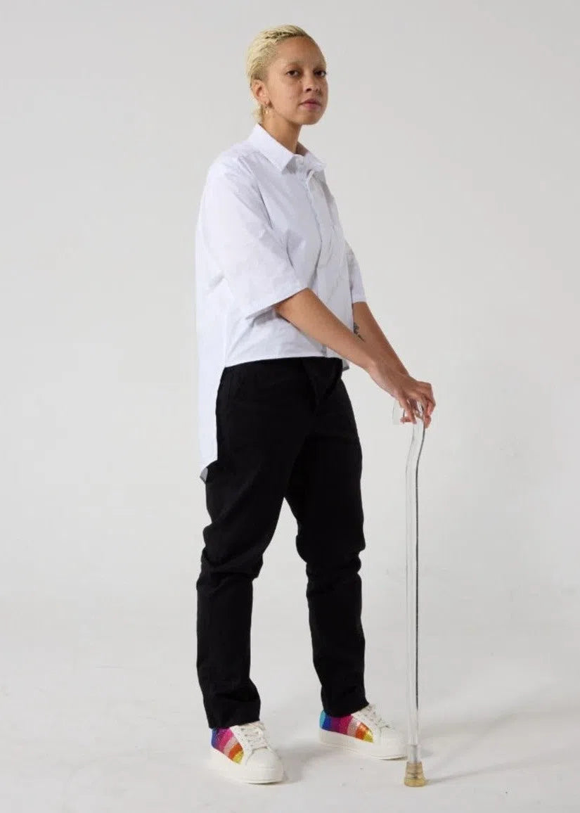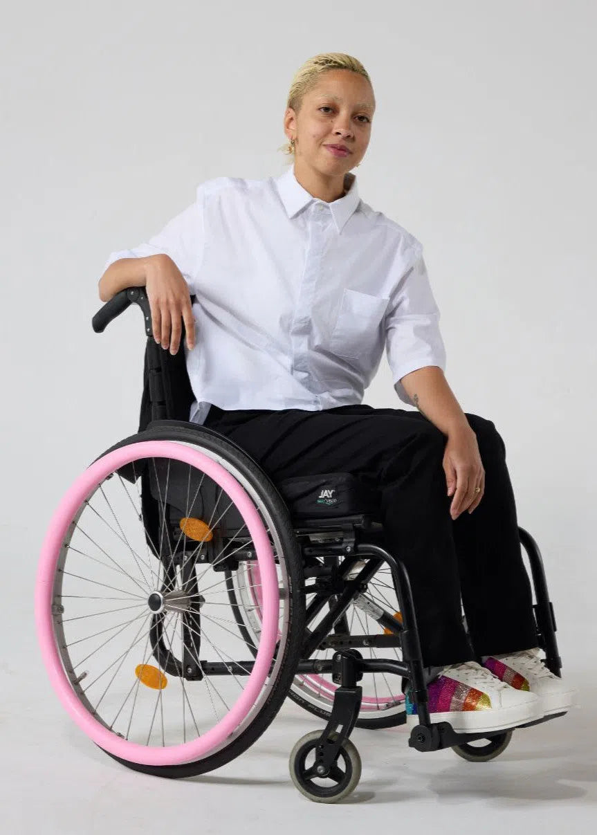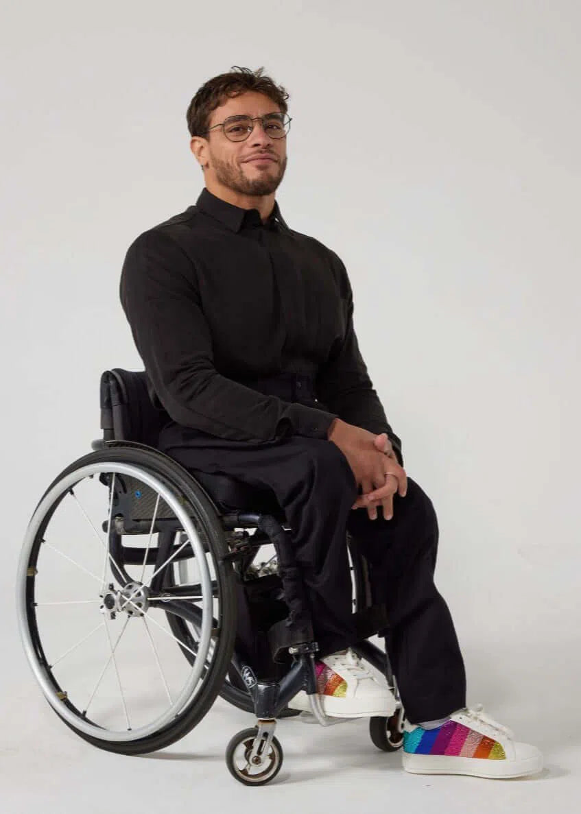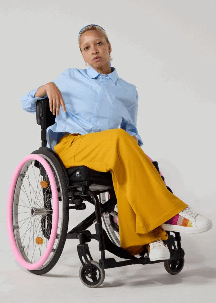 Clothing tailored for easy wear and removal, with features such as hidden openings, Velcro fastenings, and magnetic closures. Designed to cater to a wide range of body types and sizes, including wheelchairs users or customers with prosthetics, or medical conditions.