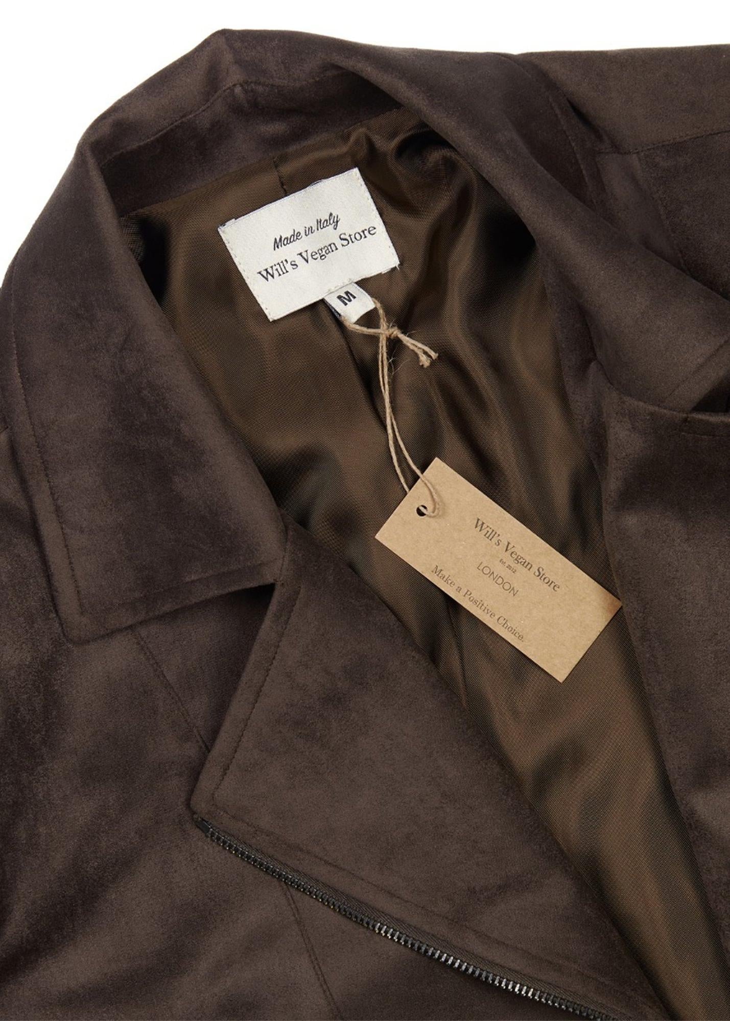 This vegan suede biker jacket is made in small batches in Tuscany from smooth, soft dark brown Italian vegan suede. It’s cut to sit perfectly on your hips and comes with two zipped side pockets lined with cotton for your essentials. WVS have used responsibly sourced nickel-free hardware, and the viscose lining makes it easy to layer up in style.