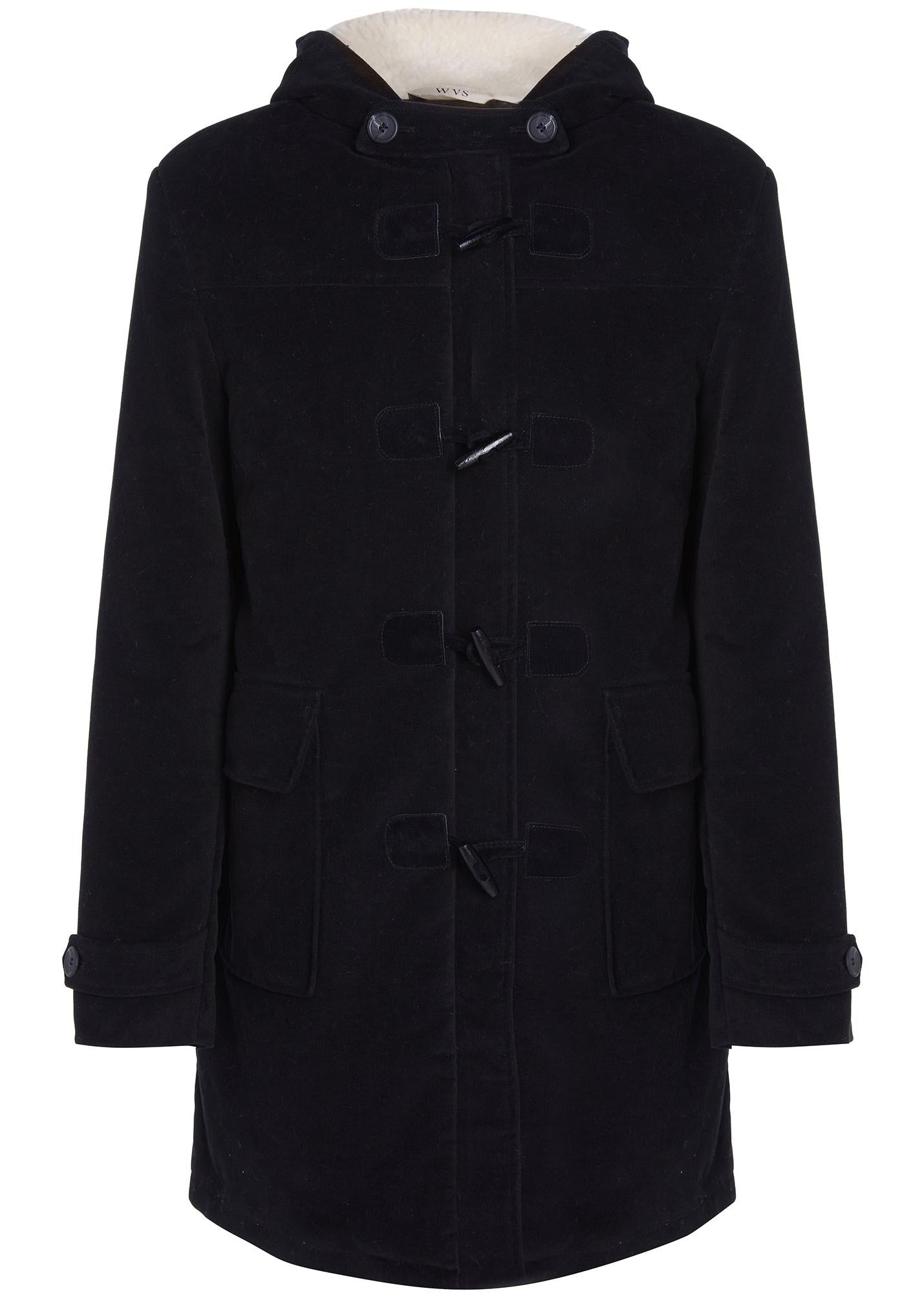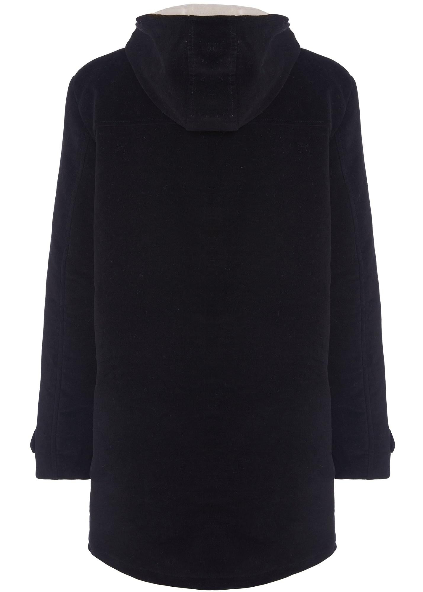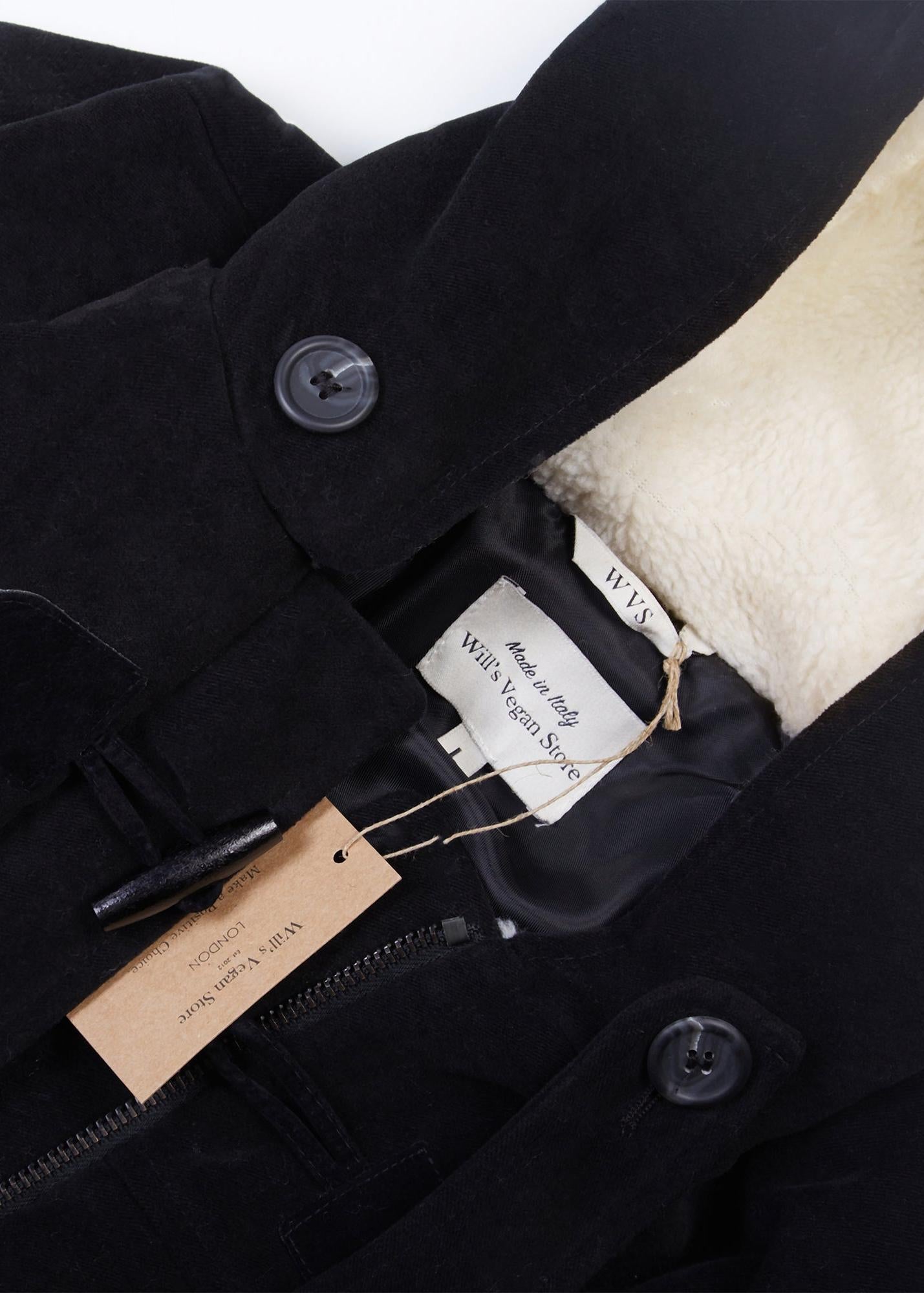 Womens Vegan Wool Duffle Coat with Recycled Vegan Shearling