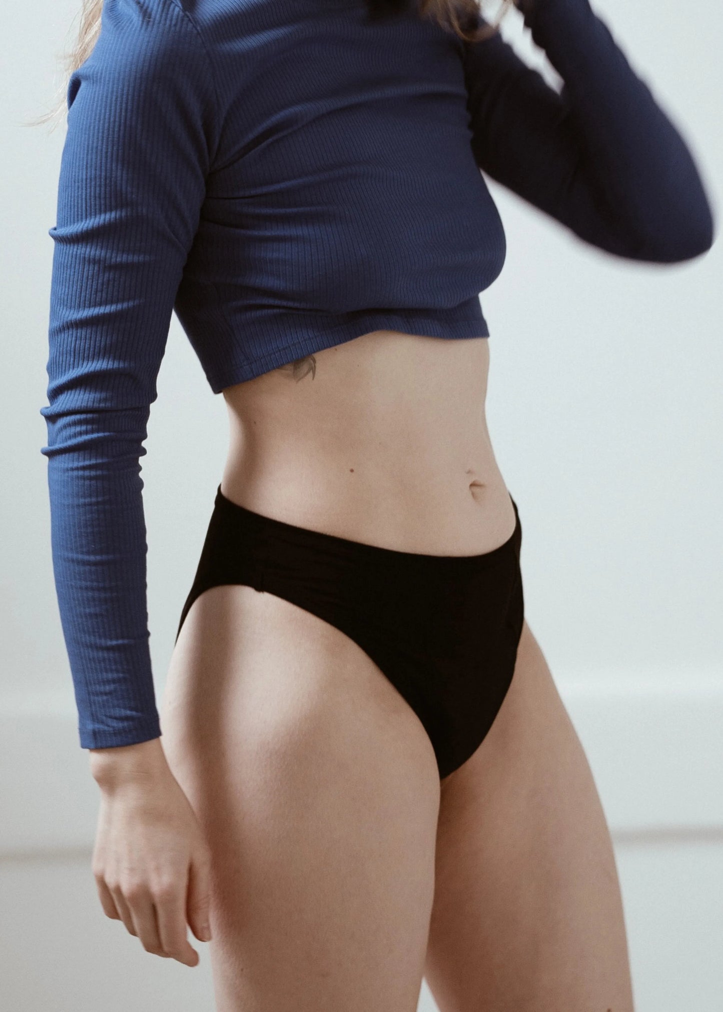 is for the run-up to your period days, the ‘is-my-period-over-yet’ days, light bleed or leak days, heavy discharge, or back-up while wearing the menstrual cup or a tampon. It is basically the revolutionary built-in panty liner, just the much better version where nothing moves around or folds and no glue sticks to your skin. You literally feel like you’re wearing regular underwear, zero thickness, full flexibility, and then you have the added benefit of feeling protected. We love this absorbency that works for so many different uses.