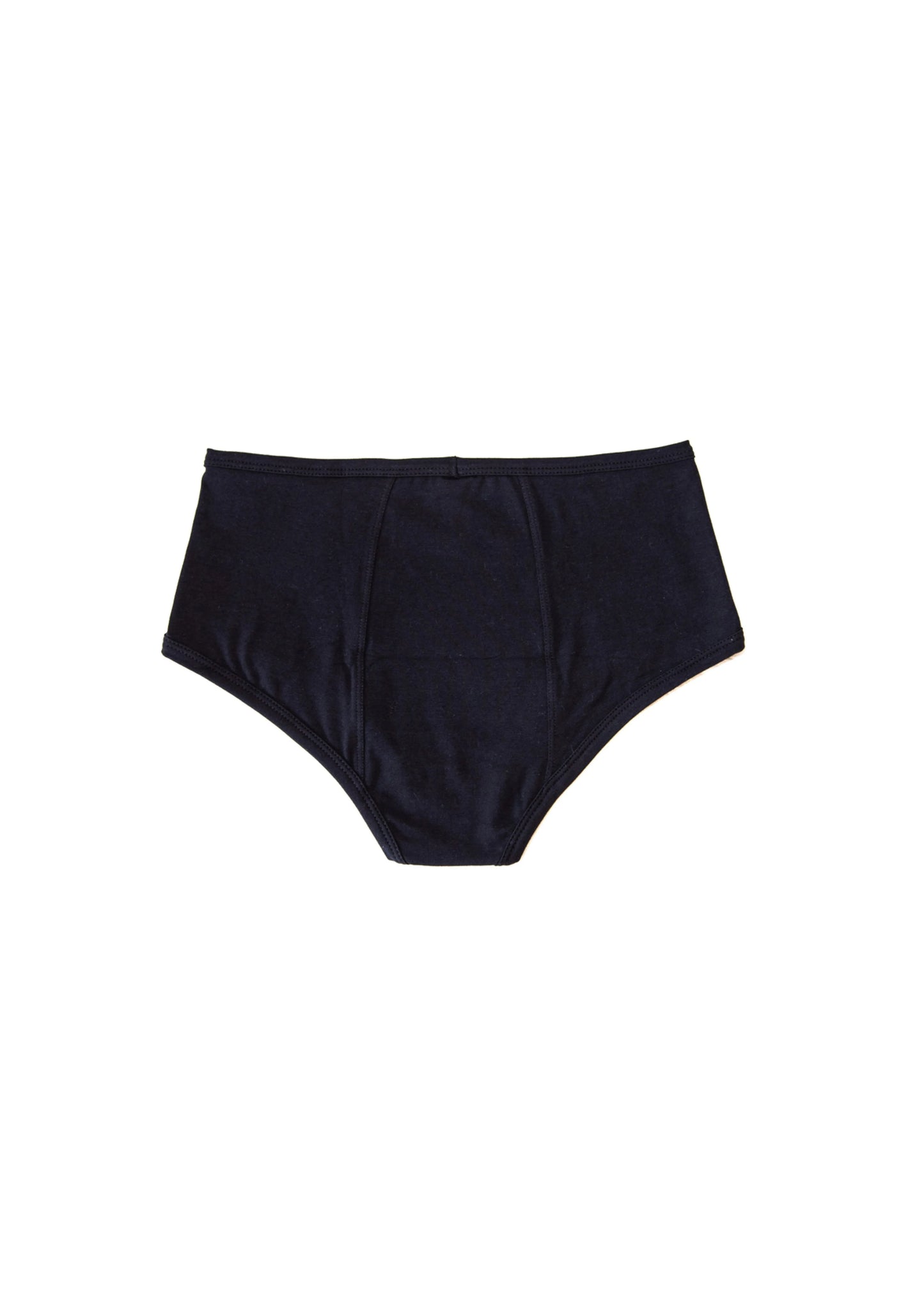 has extra high absorbency and extra long gusset (read: all the way to the waistband back and front) for extra protection when lying down. Made for you to be able to get a good night's sleep no matter what day of the month it is. This absorbency is also great for postpartum.