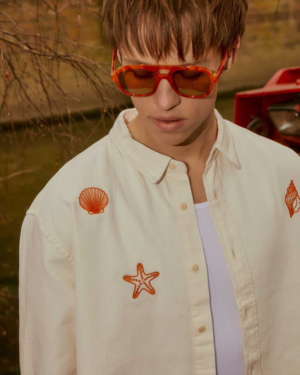 Shell Embroidered Organic Cotton Shirt Ecru