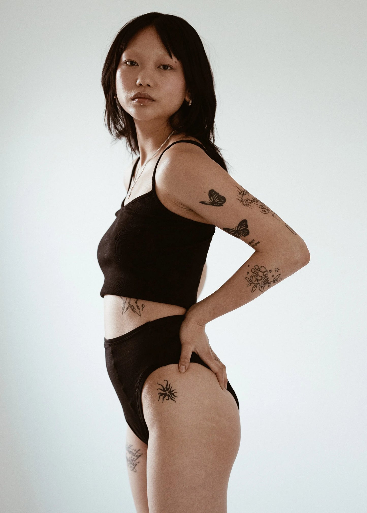 is for the run-up to your period days, the ‘is-my-period-over-yet’ days, light bleed or leak days, heavy discharge, or back-up while wearing the menstrual cup or a tampon. It is basically the revolutionary built-in panty liner, just the much better version where nothing moves around or folds and no glue sticks to your skin. You literally feel like you’re wearing regular underwear, zero thickness, full flexibility, and then you have the added benefit of feeling protected. We love this absorbency that works for so many different uses.