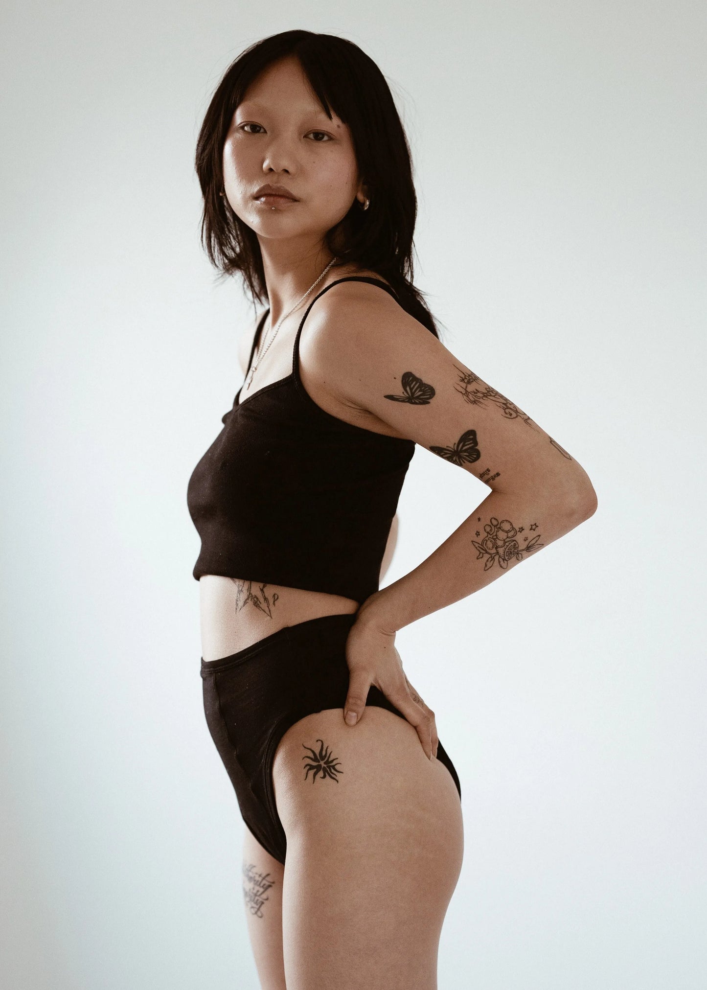 is for the run-up to your period days, the ‘is-my-period-over-yet’ days, light bleed or leak days, heavy discharge, or back-up while wearing the menstrual cup or a tampon. It is basically the revolutionary built-in panty liner, just the much better version where nothing moves around or folds and no glue sticks to your skin. You literally feel like you’re wearing regular underwear, zero thickness, full flexibility, and then you have the added benefit of feeling protected. We love this absorbency that works for so many different uses.