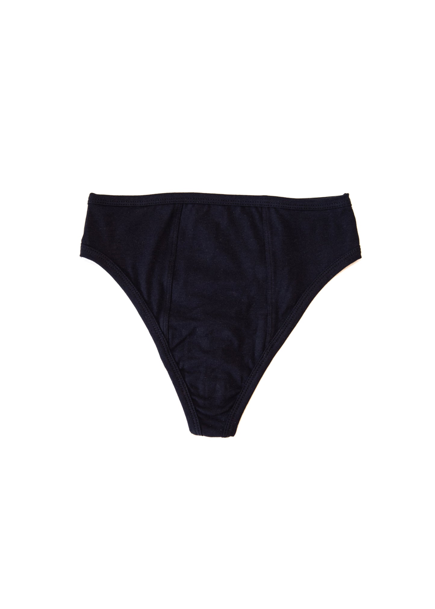 Thong with extra high waist and soft bound seams.