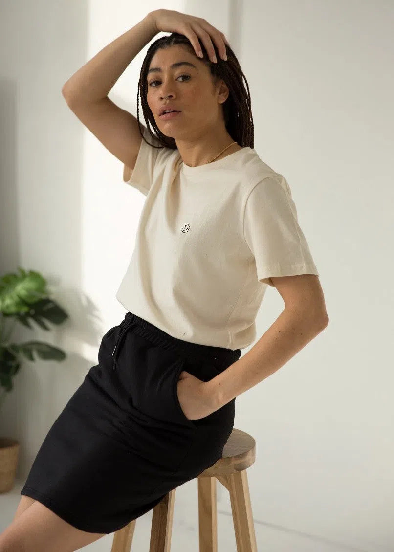 Drawstring sweat skirt, an easy to wear 'seasonless' piece, and soft elasticated waist with functional drawcord.