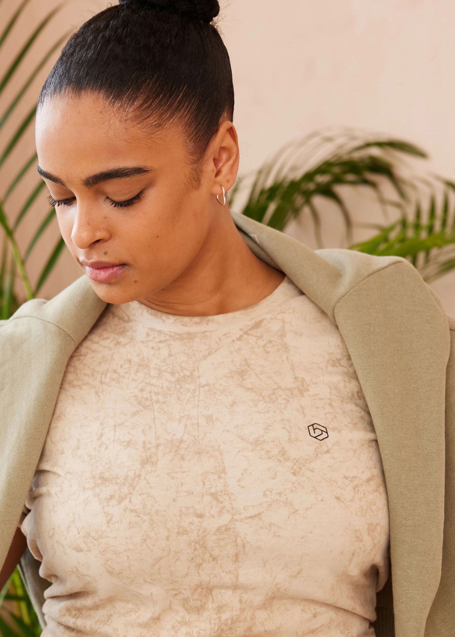 100% certified Organic Cotton Unisex T-shirt with a small signature Hexed logo print at front left chest. The EARTH WASH ™️ developed by Shibori here in the UK. Earth Wash is an innovative dye technique with an appearance similar to tie dye, it replaces outdated toxic dyeing techniques with a more sustainable alternative using non harmful pigment based dyes and less water.
