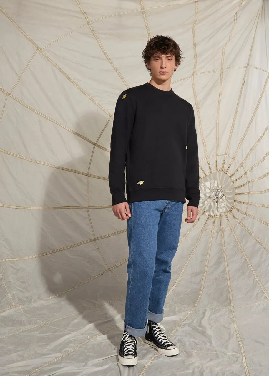 Stay cool and comfortable all day long in this playful double layered sweatshirt in black. A great everyday basic, you'll want to wear it everywhere you go. Worn relaxed, this classic style will compliment any outfit.