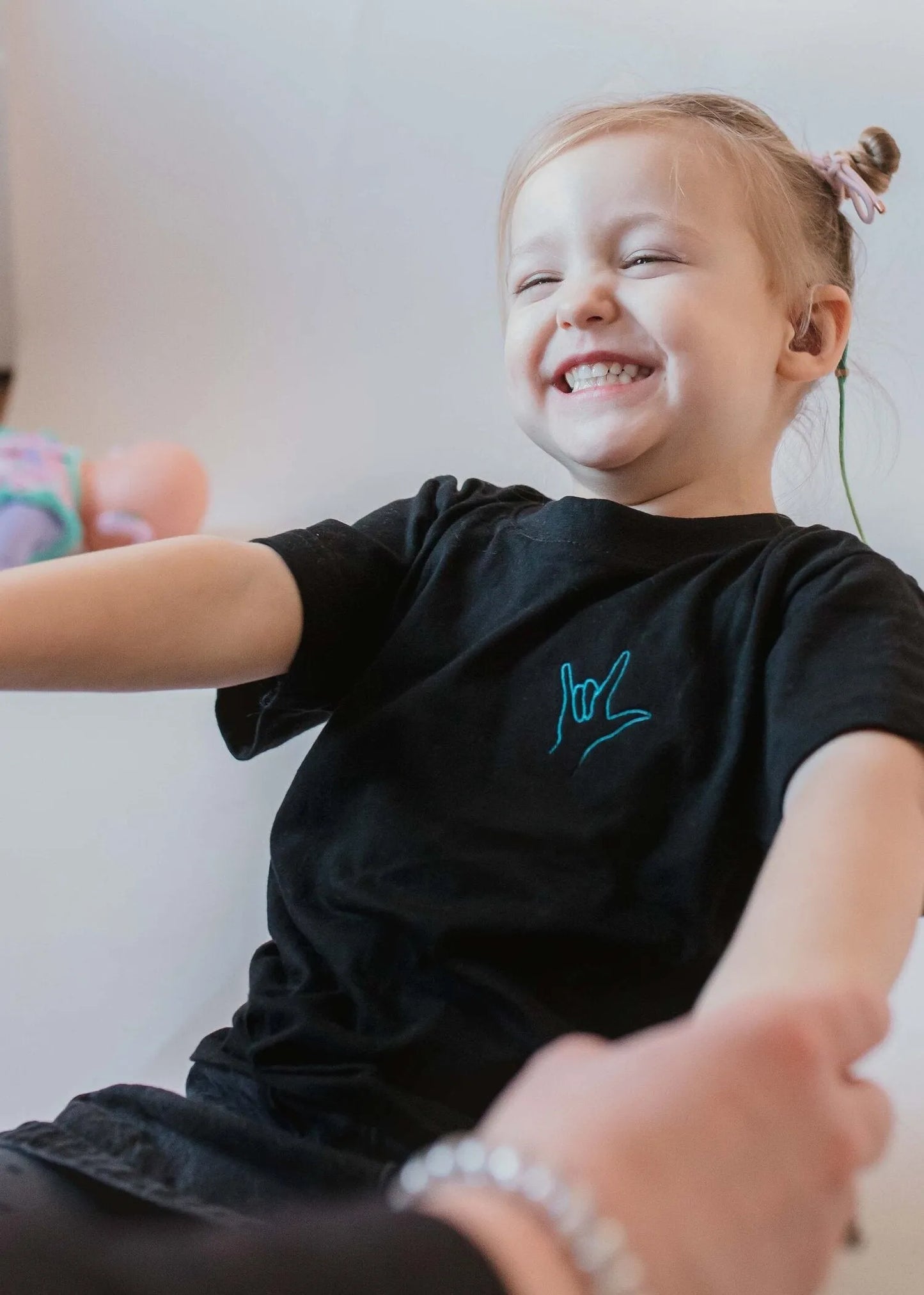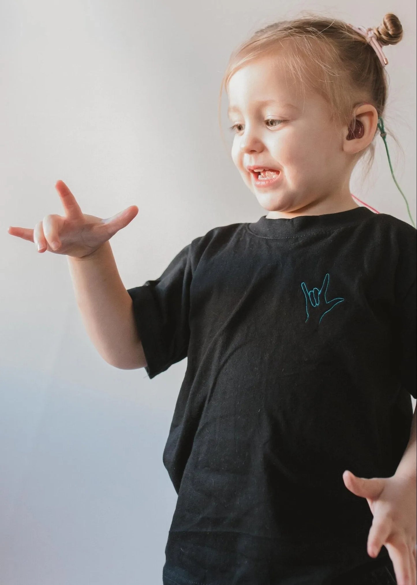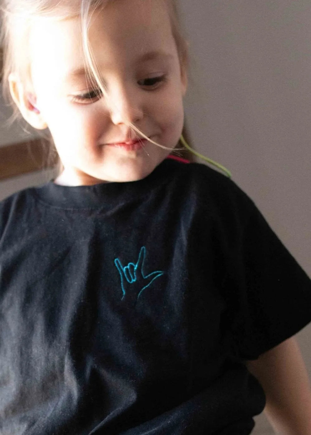 Kids 'I Love You' organic cotton hand sign embroidered thread logo T-shirt - Unisex