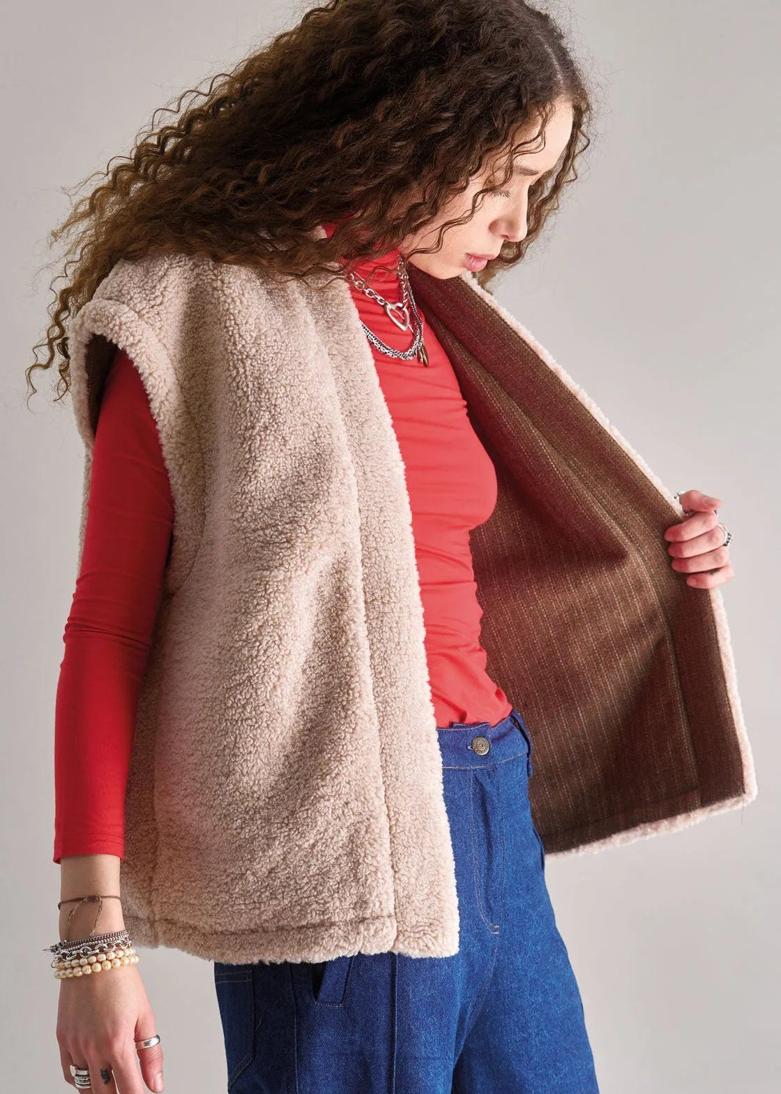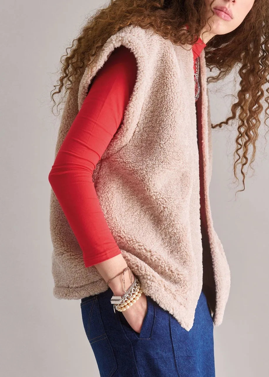 GEORGIE Reversible Recycled Fleece Gilet - Sand