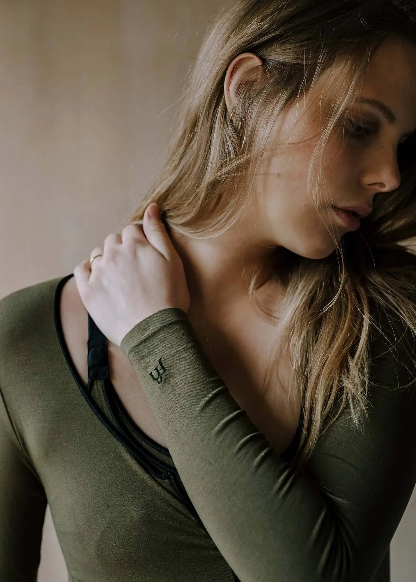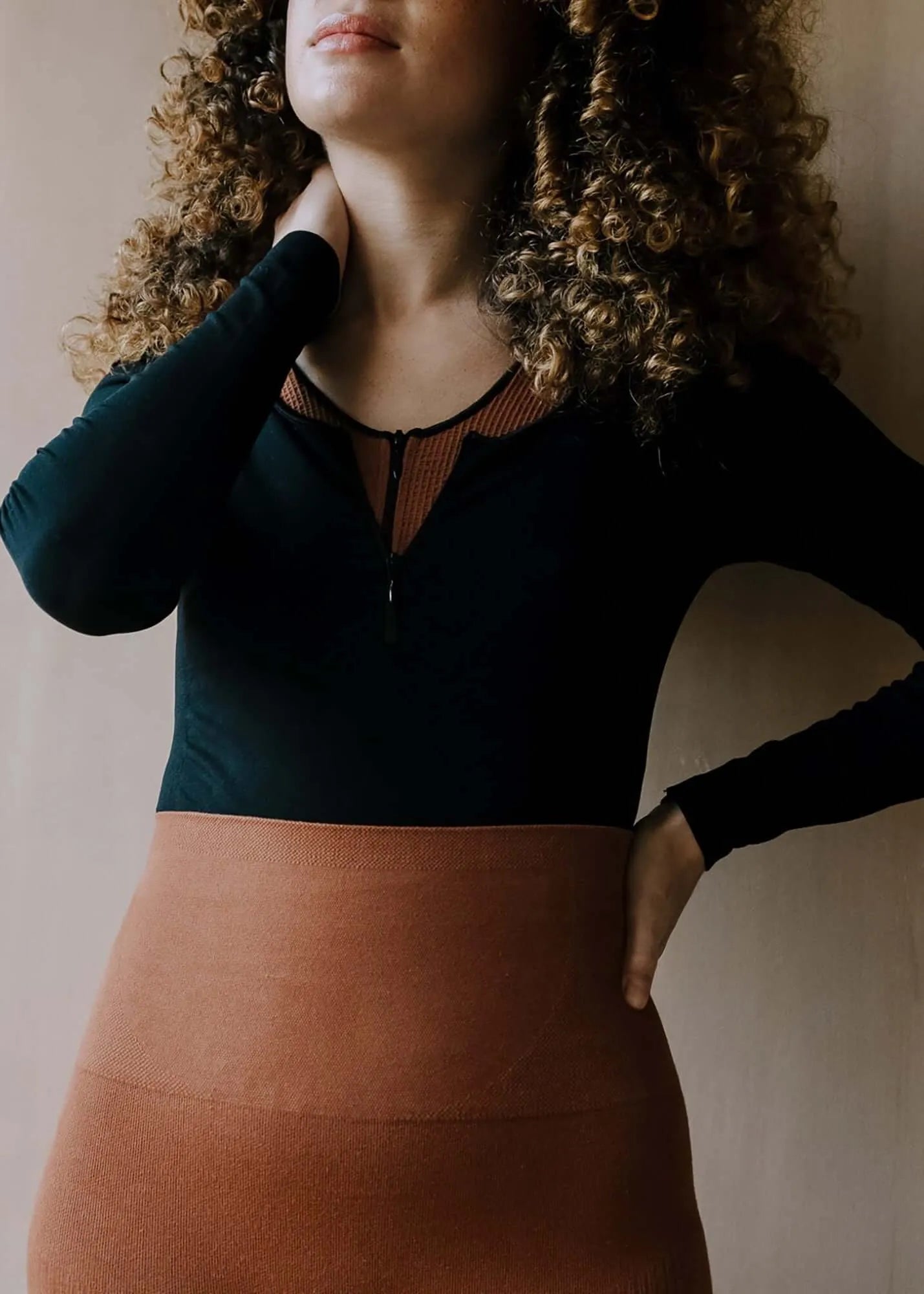 The Long Sleeve Bodysuit has been designed to embrace the ever-changing state of the female form.