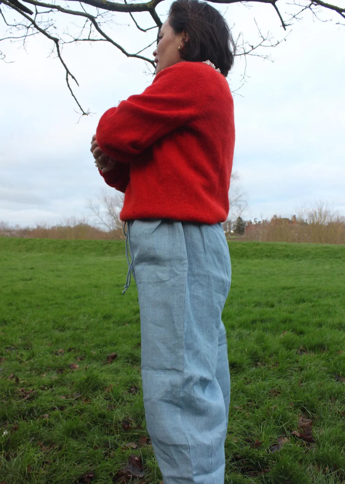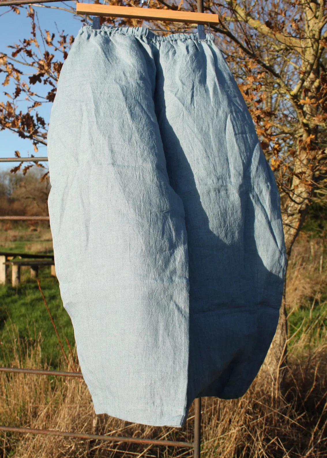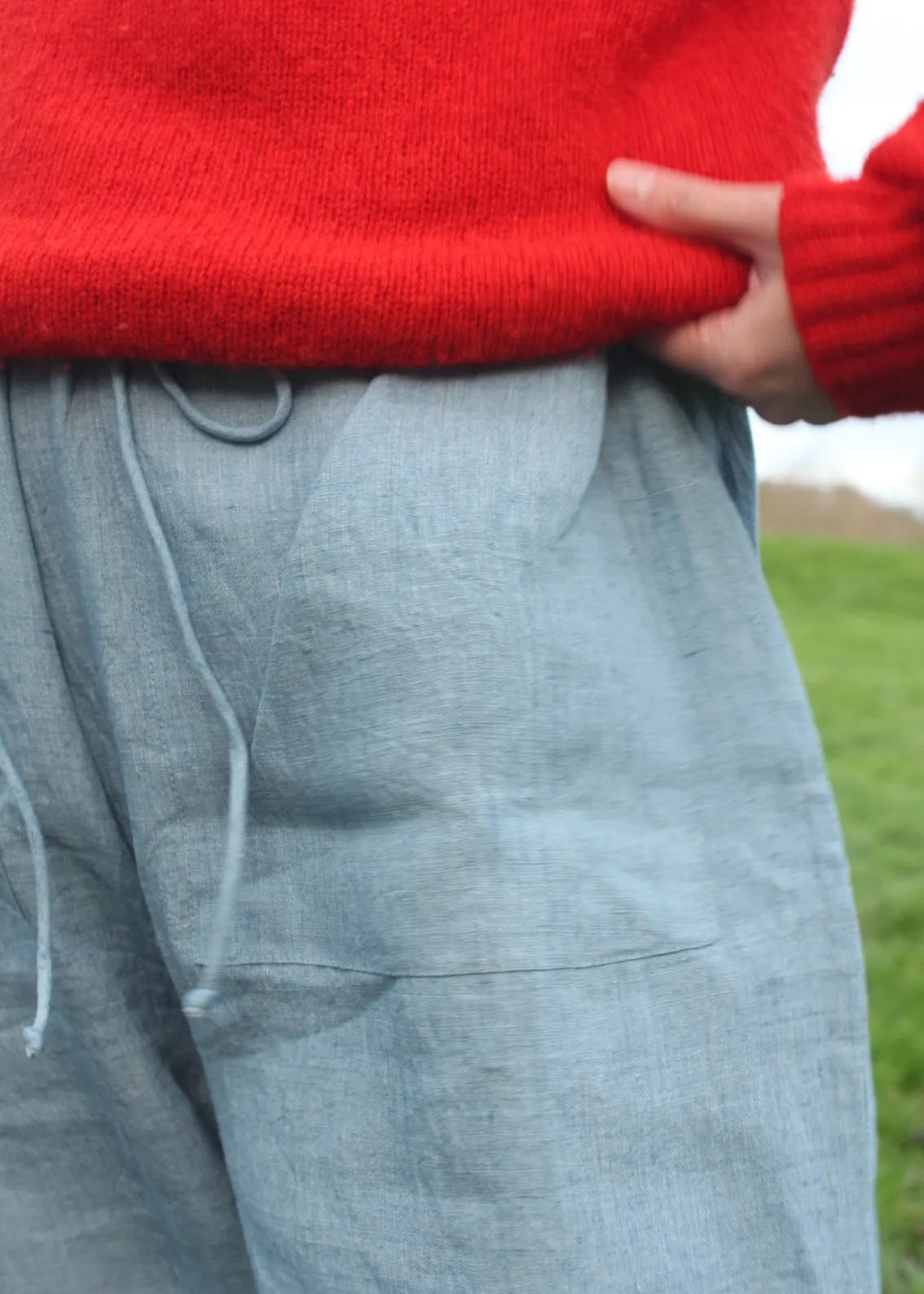 These beautiful slightly barrel legged linen trousers are the perfect staple to wear all year round. In buttery soft linen, these trousers are loose and so easy to wear. With beautiful big front pockets, elasticated, drawstring waist and slightly cropped leg, they are flattering and amazingly comfortable.