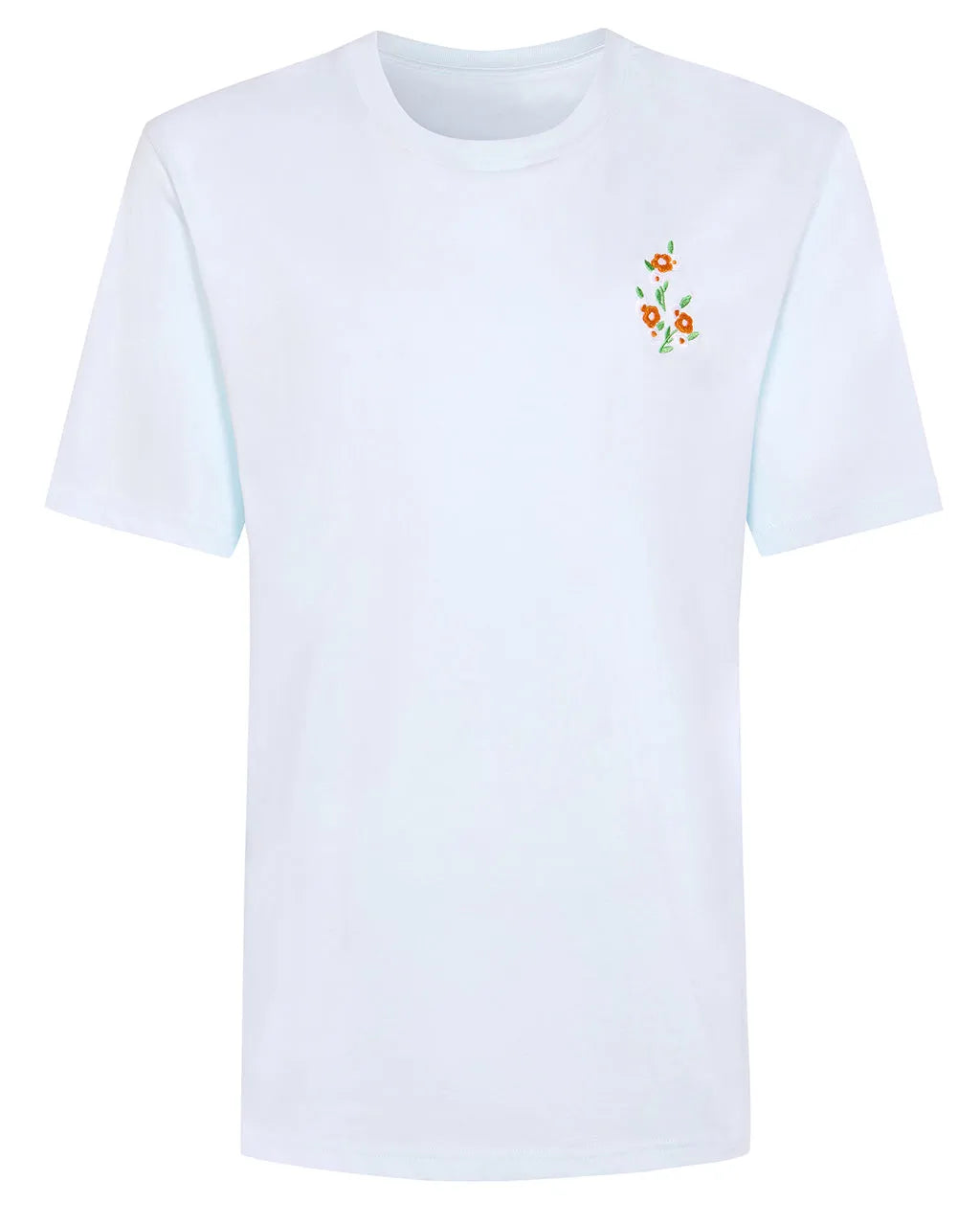 The standout floral embroidery, delicately crafted in London, adds a playful yet elegant touch to this wardrobe essential. Made from ultra-soft organic cotton, this t-shirt offers the ideal combination of comfort and long-lasting durability, ensuring it remains a favourite in your collection for seasons to come.