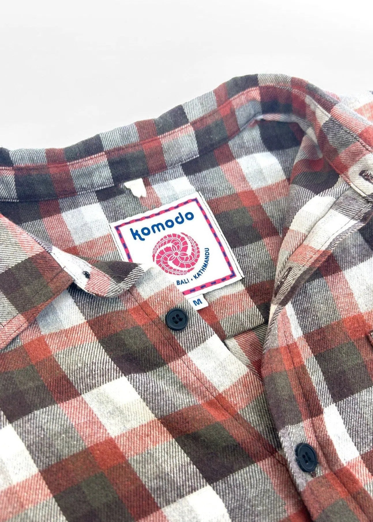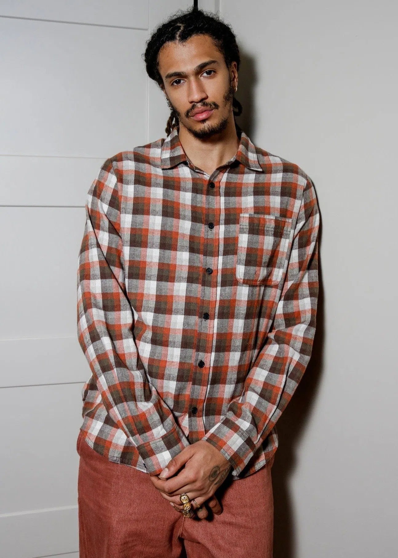 SANTI Organic Cotton Flannel Shirt - Oat Check
