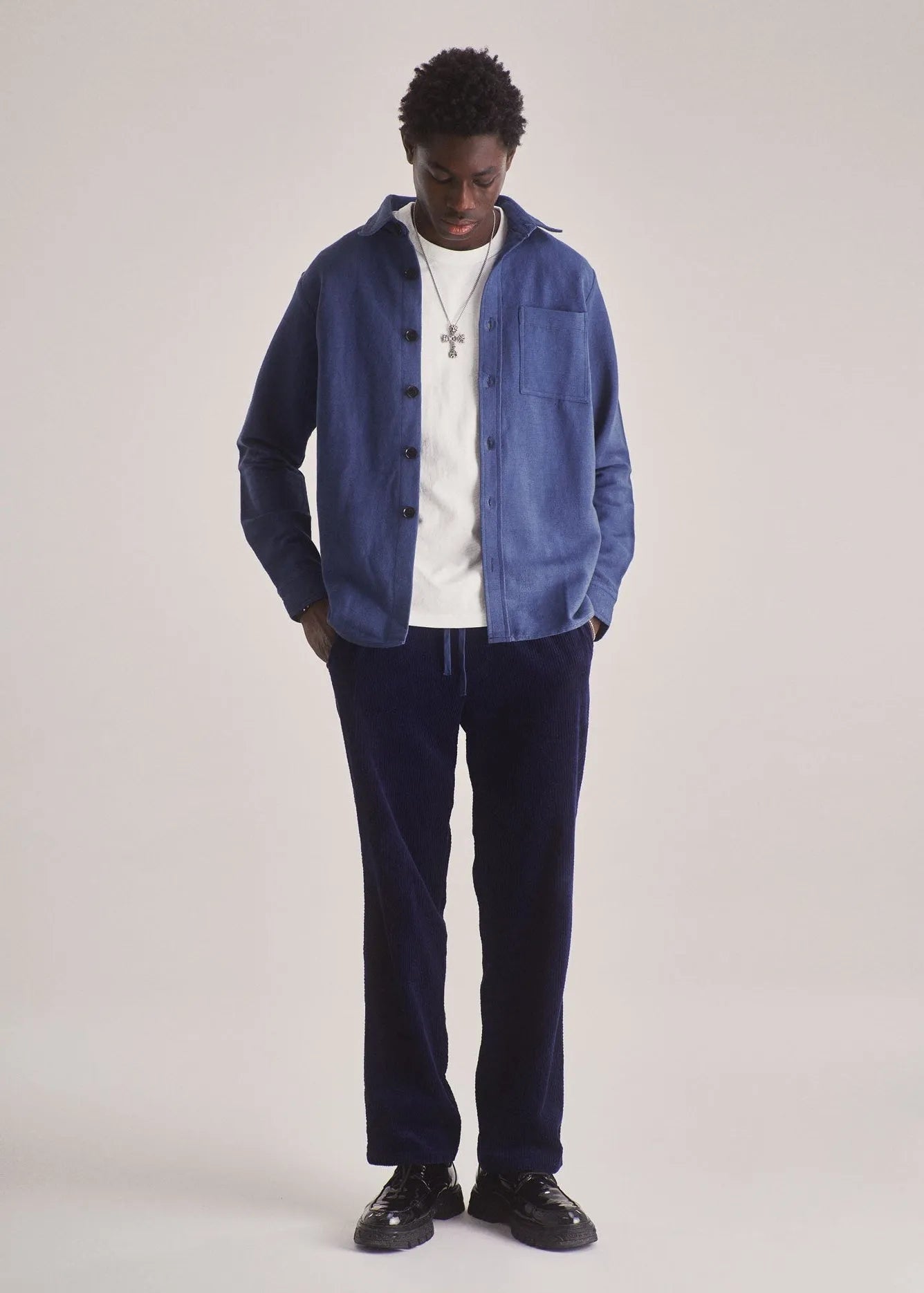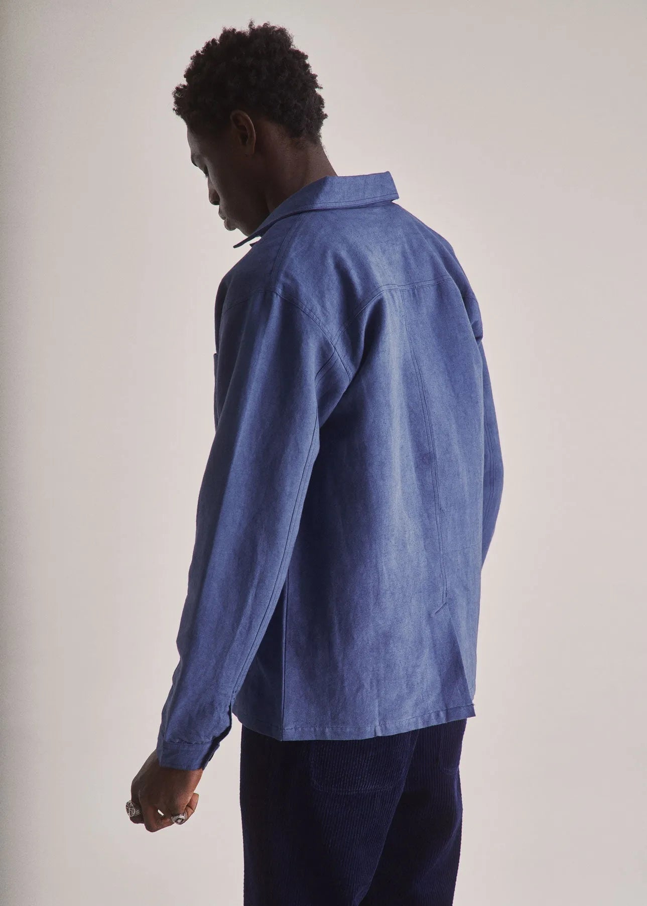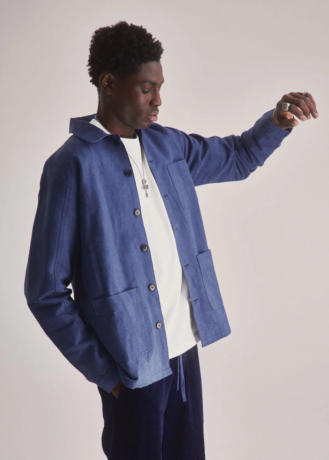 The men's Railway jacket combines the natural strength of 60% cotton and 40% hemp in a handwoven fabric that’s both breathable and sturdy. Fully lined with 100% cotton for comfort, it is fully vegan and features vegan corozo buttons. Carefully hand loomed, Its deep blue shade makes it an excellent layering piece for autumn, offering warmth without weight. Choose a jacket that blends timeless craftsmanship with everyday practicality.