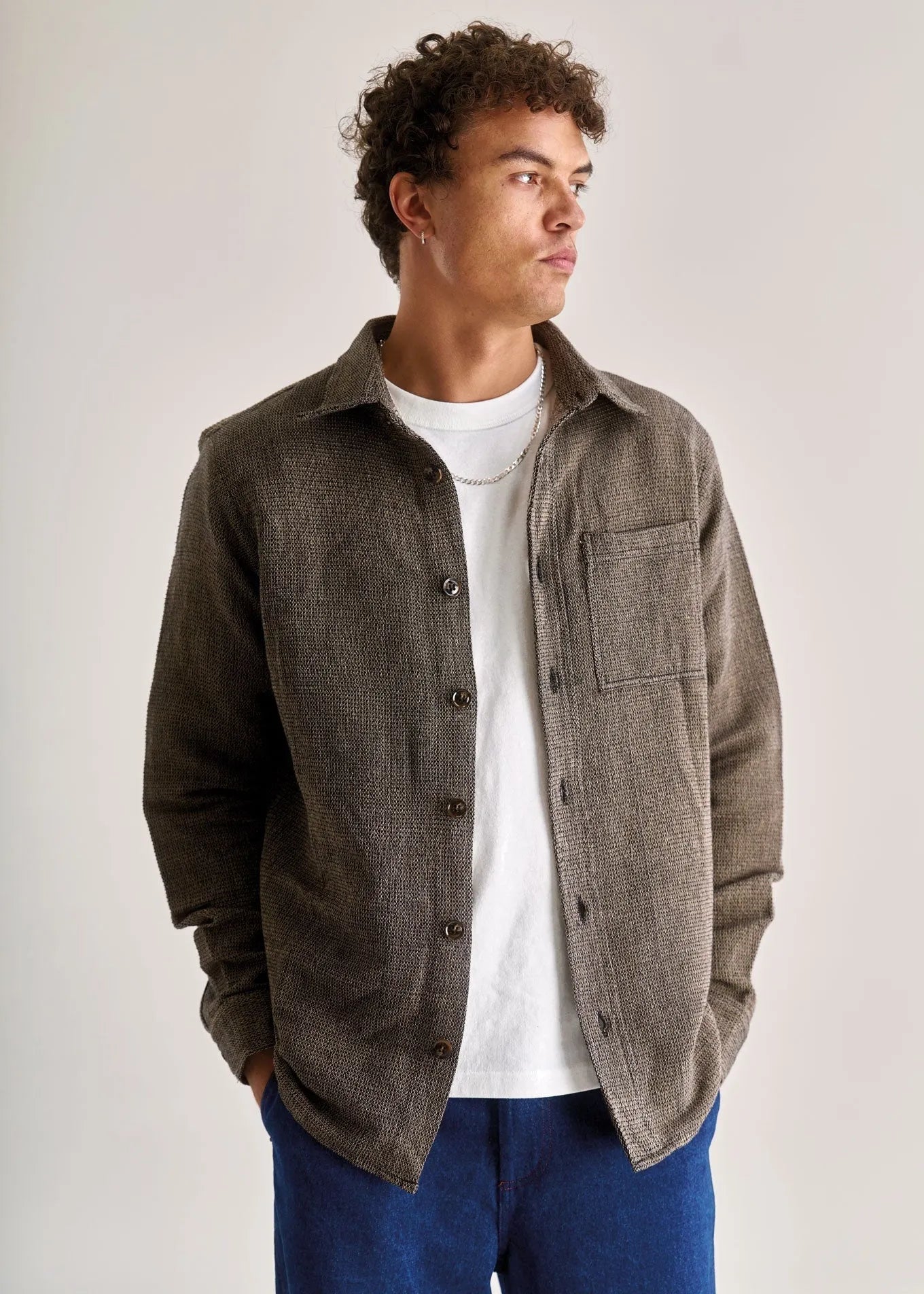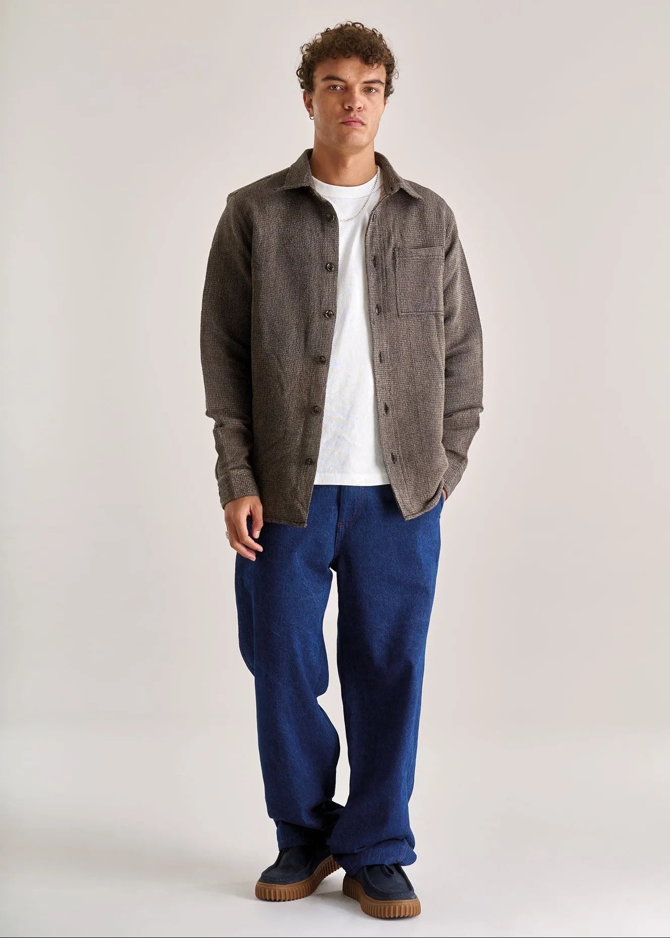 Crafted from hand-woven, organic cotton, the SHANTI Over Shirt in brown offers an easy, relaxed fit, thrown on layer. GOTS certified and made in Kathmandu, this shirt supports ethical production while providing breathable comfort. Wear it open or buttoned up for versatile, effortless style rooted in sustainable craftsmanship.
