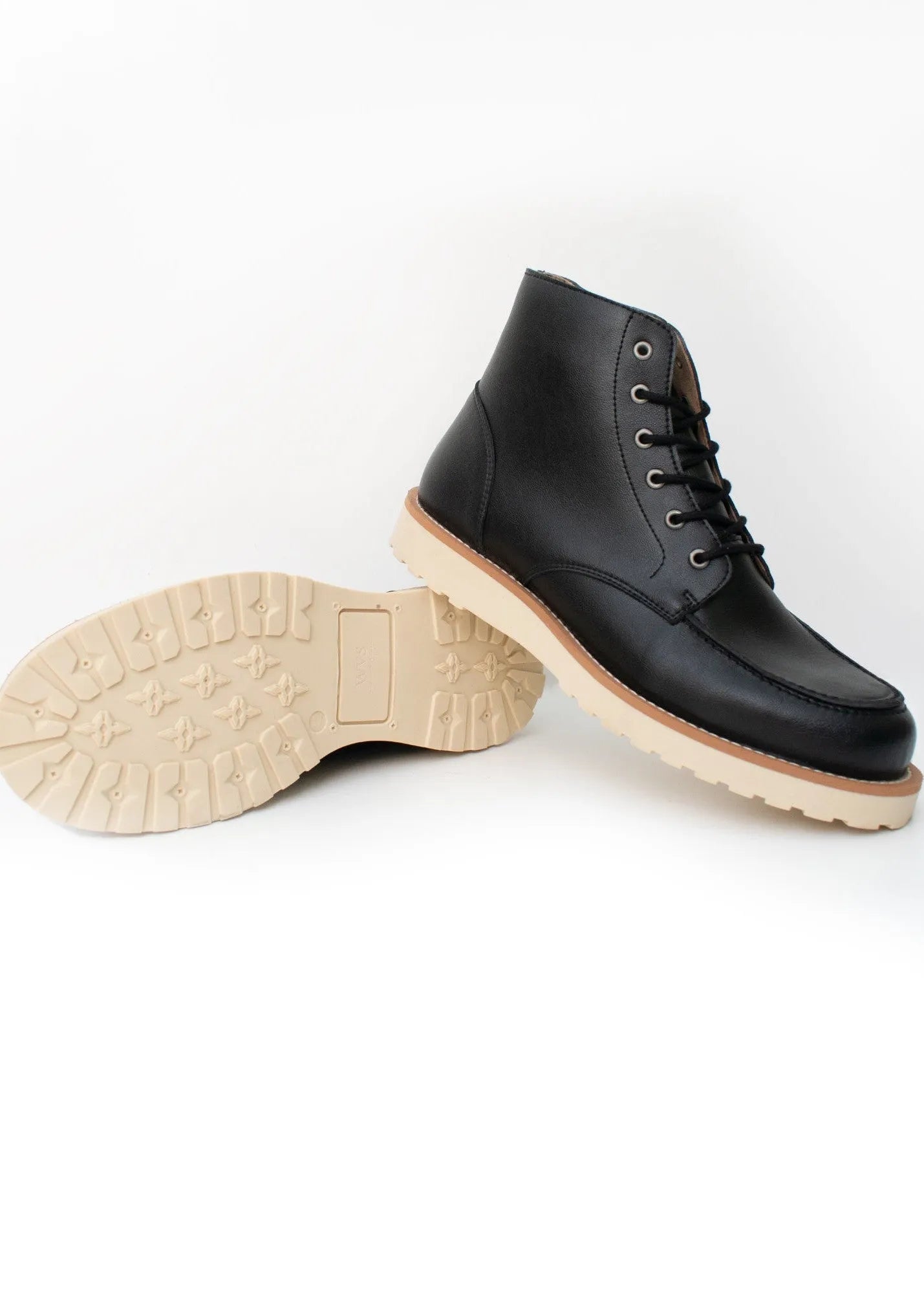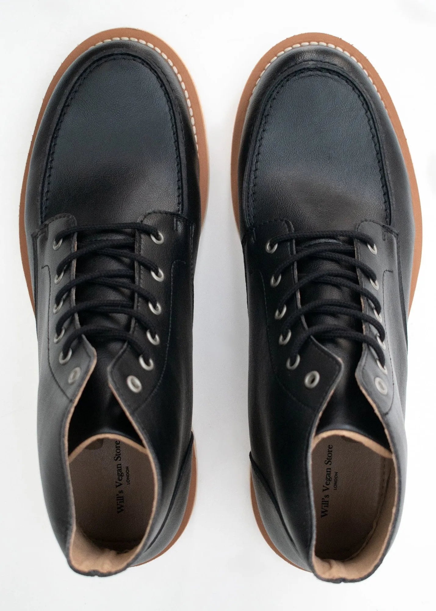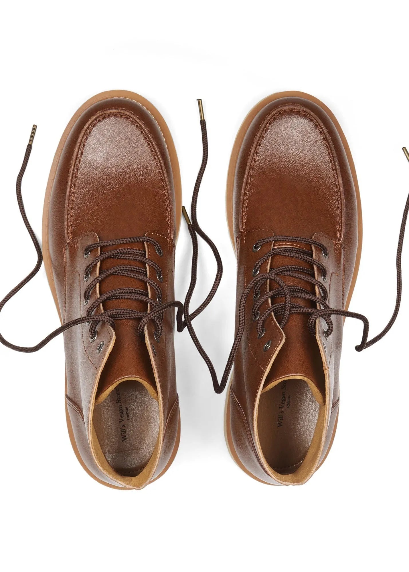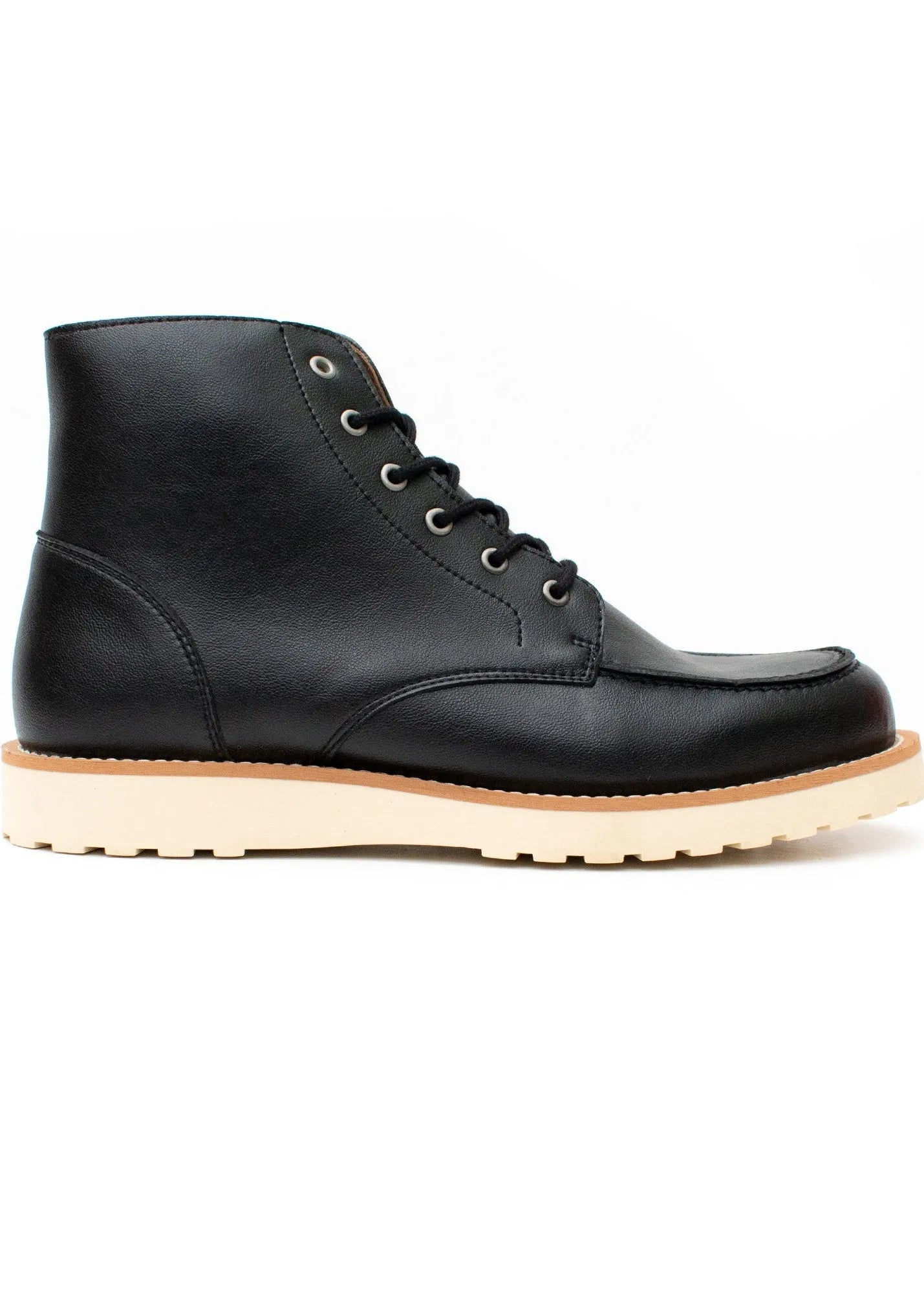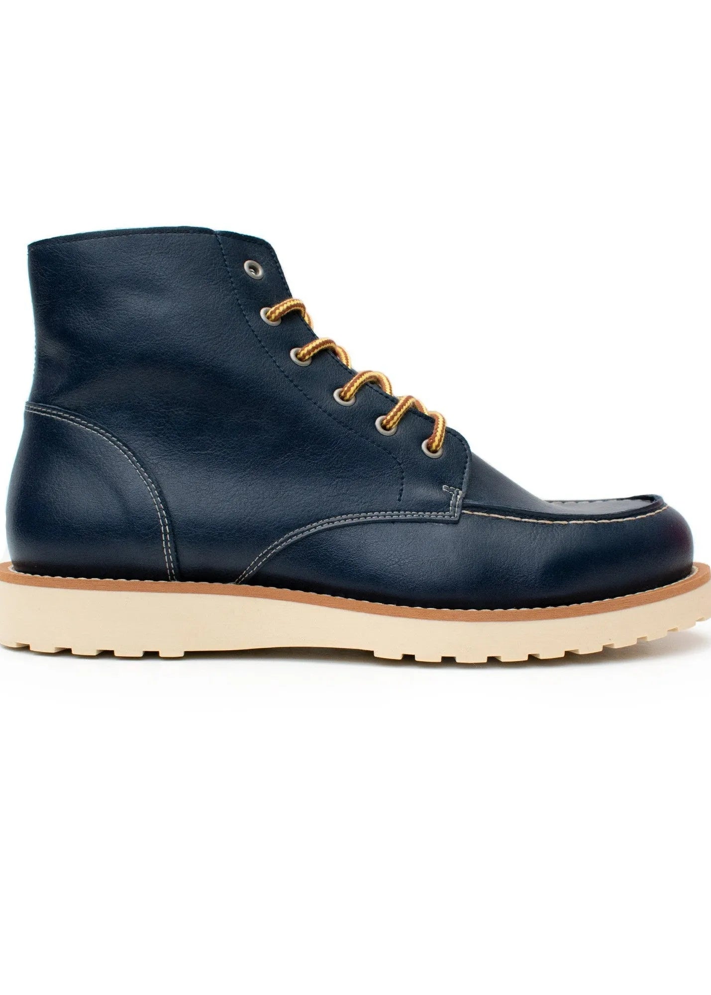 The substantial yet supple Italian vegan leather made with 69% bio-based content moulds to your feet over time, creating a customized fit. The thick recycled polyester laces are sturdy and classic, ensuring your boots stay snugly on your feet. The cushioned insoles and vegan suede lining provide comfort, even after a long day on your feet.