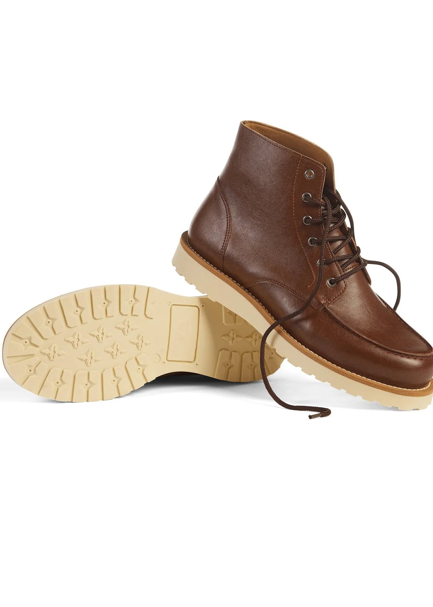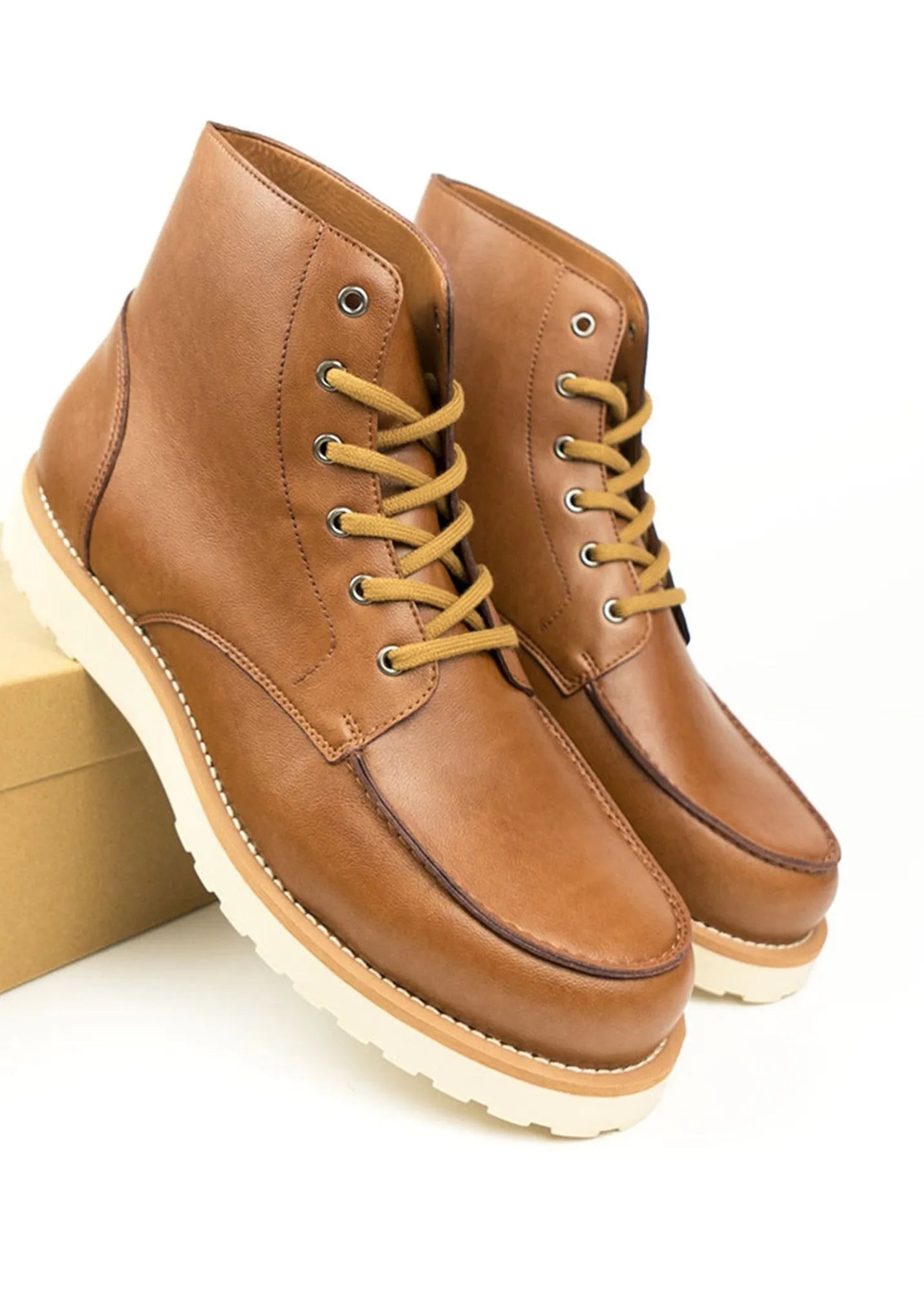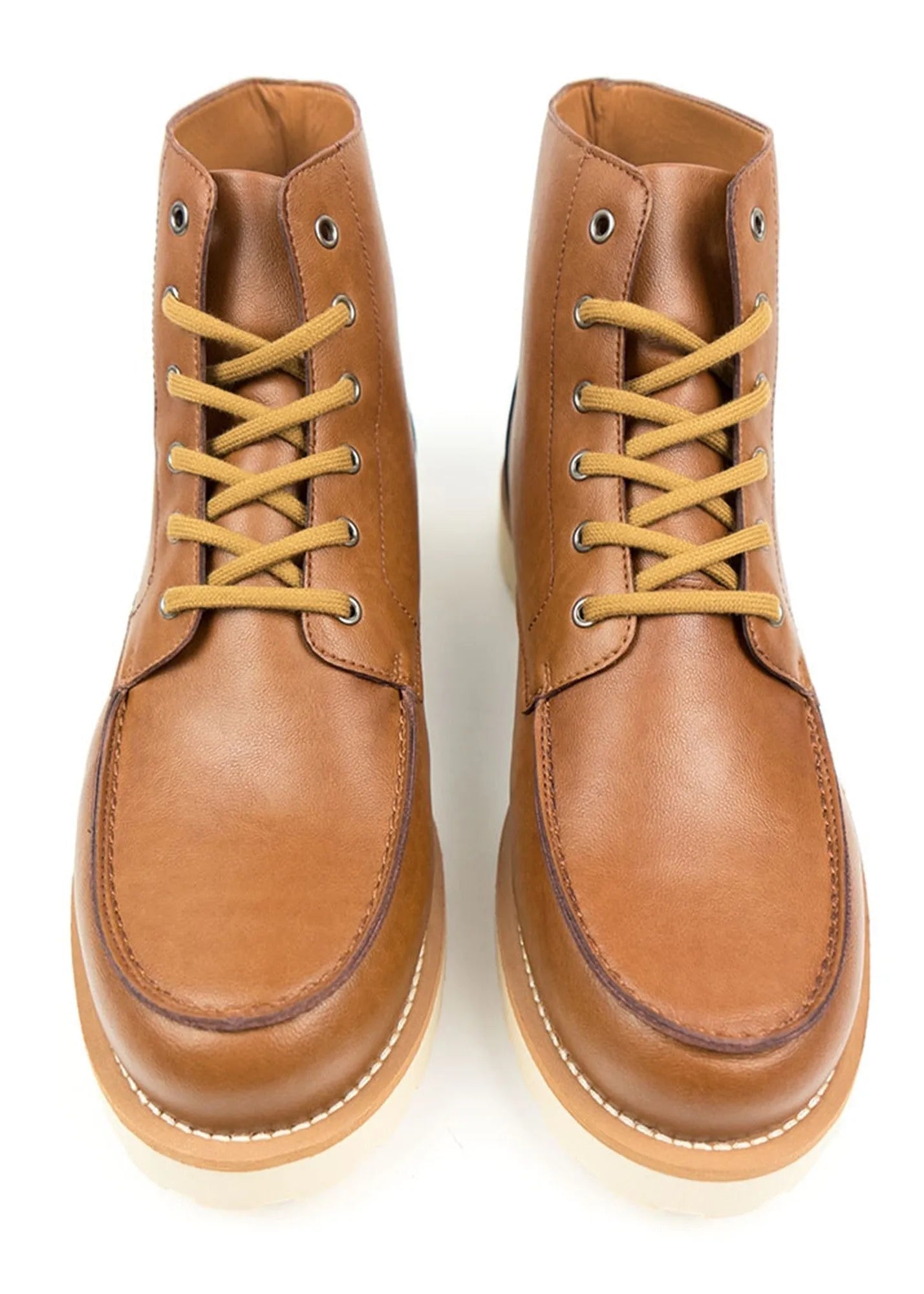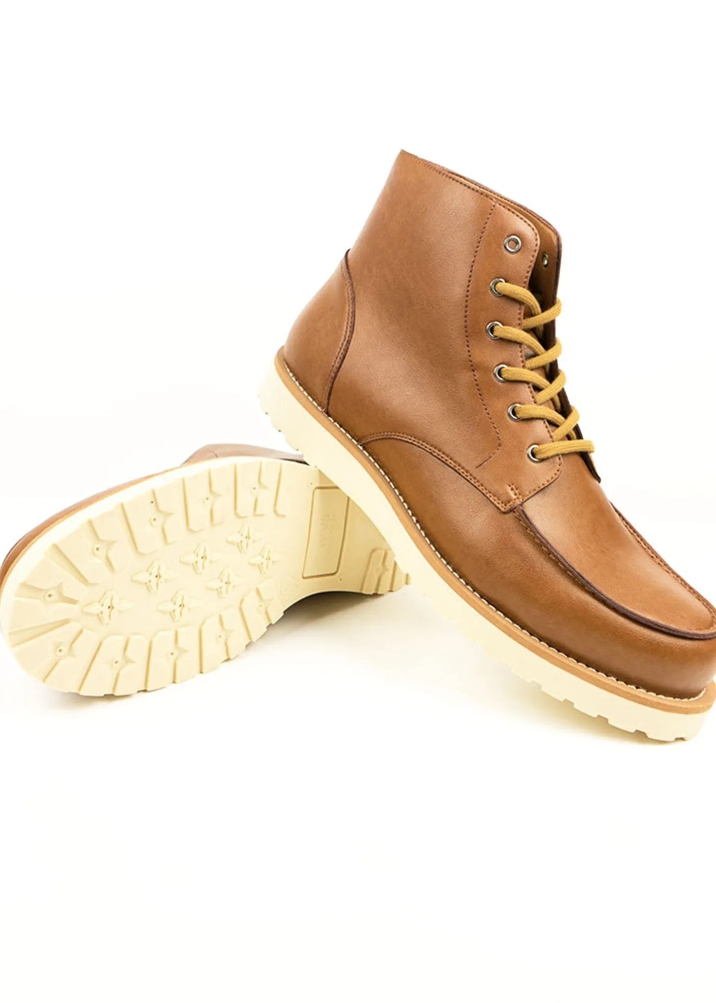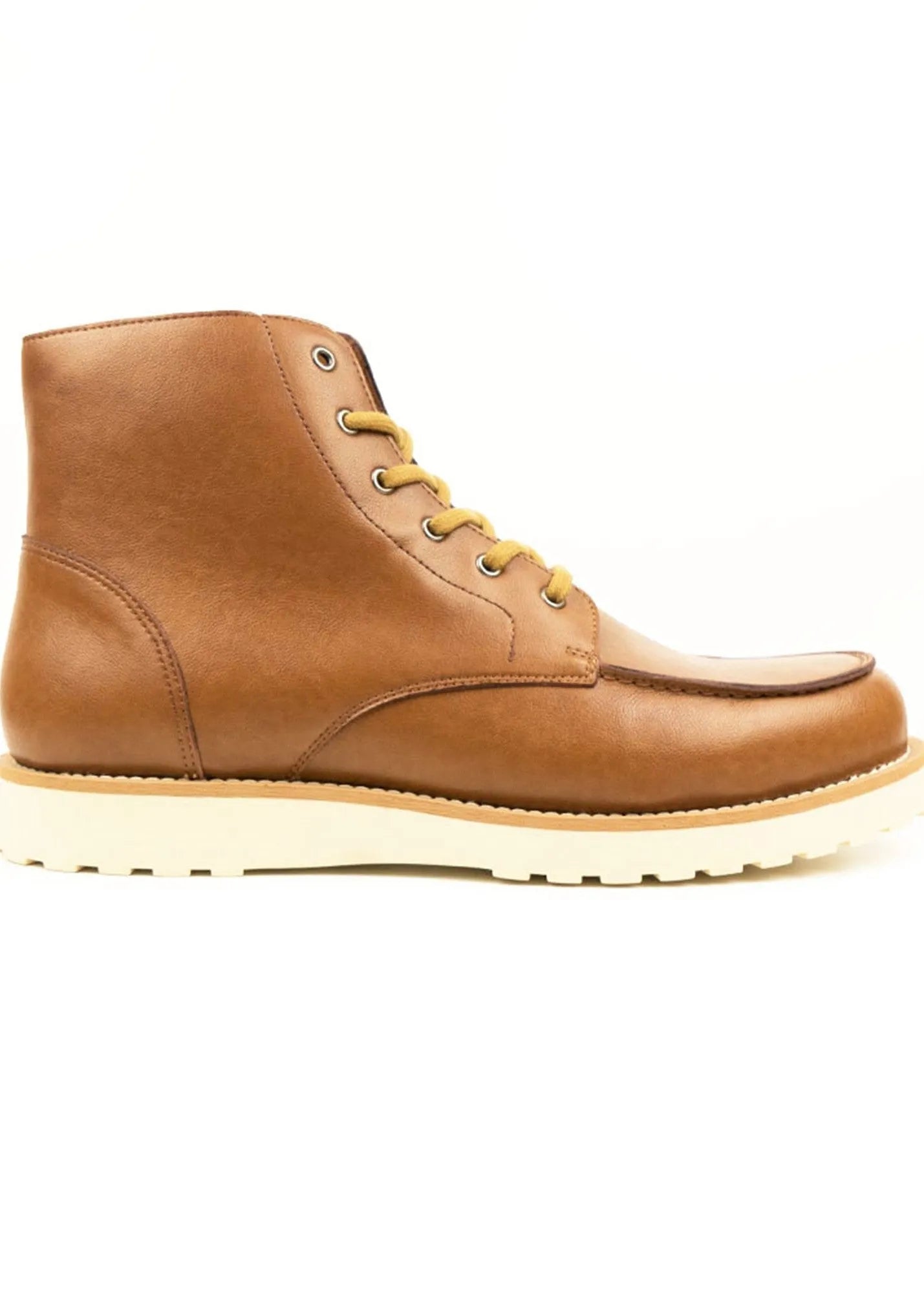 The substantial yet supple Italian vegan leather made with 69% bio-based content moulds to your feet over time, creating a customized fit. The thick recycled polyester laces are sturdy and classic, ensuring your boots stay snugly on your feet. The cushioned insoles and vegan suede lining provide comfort, even after a long day on your feet.