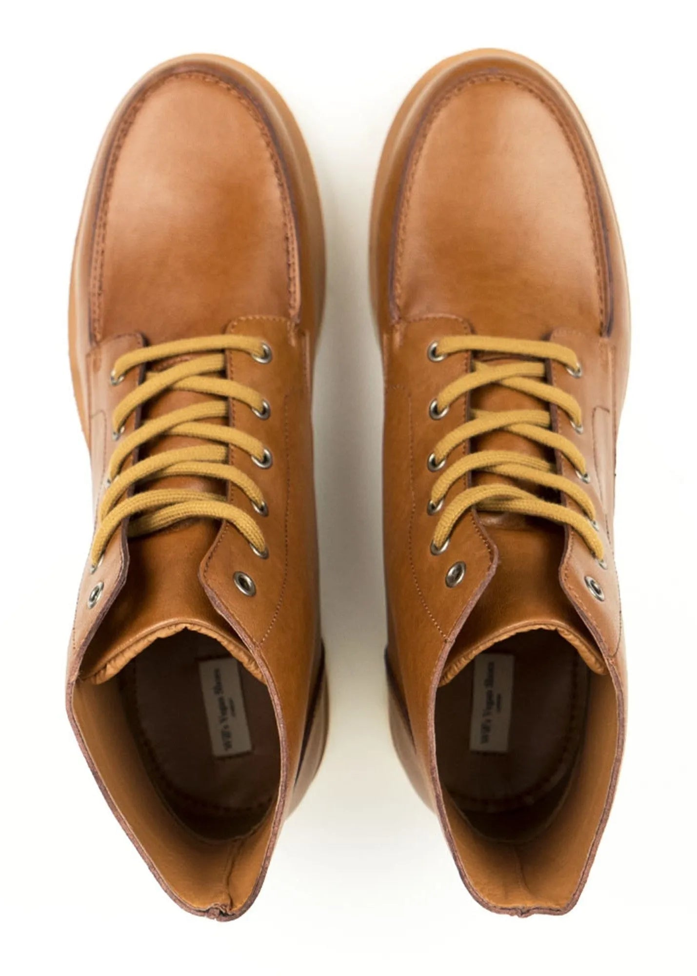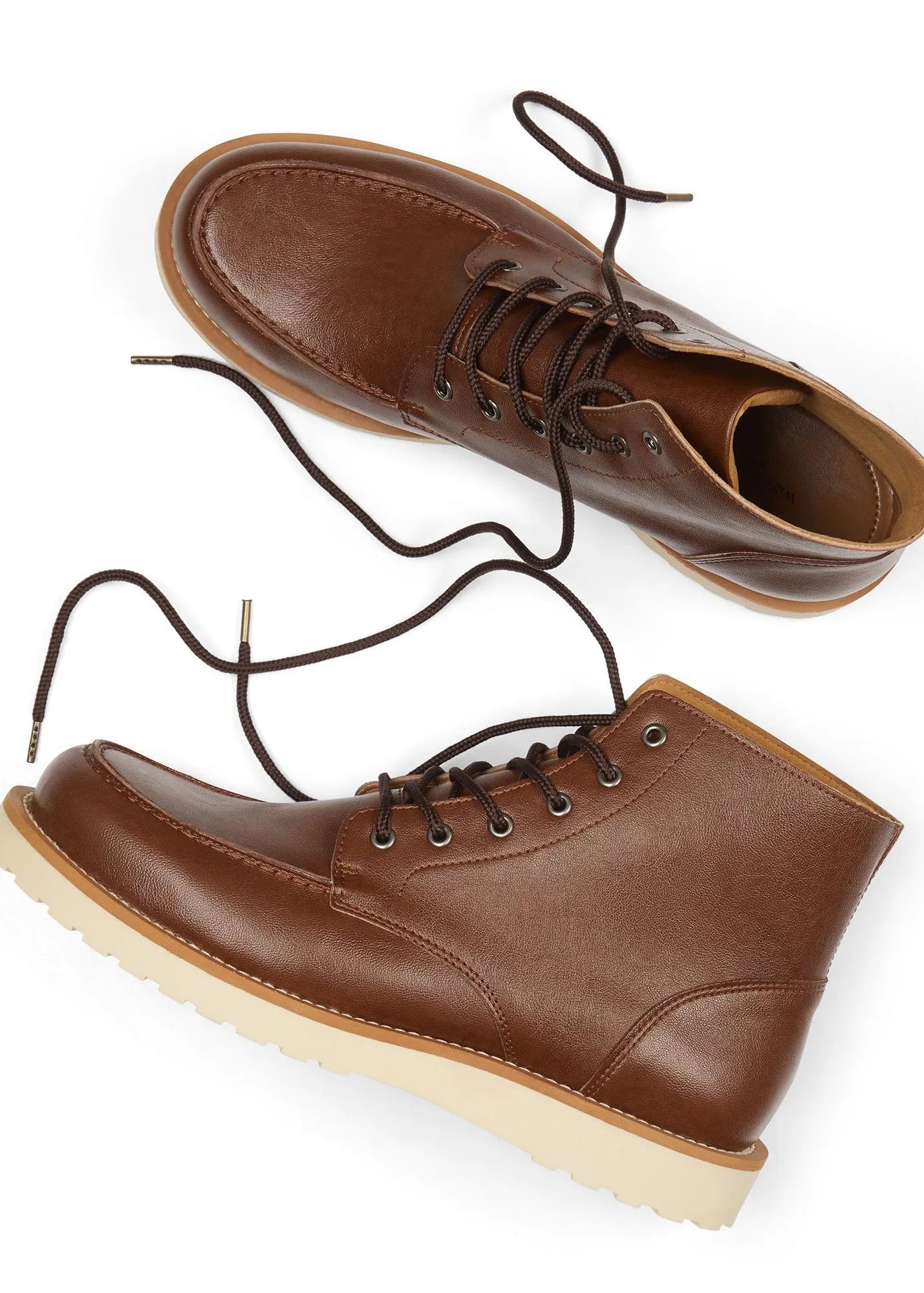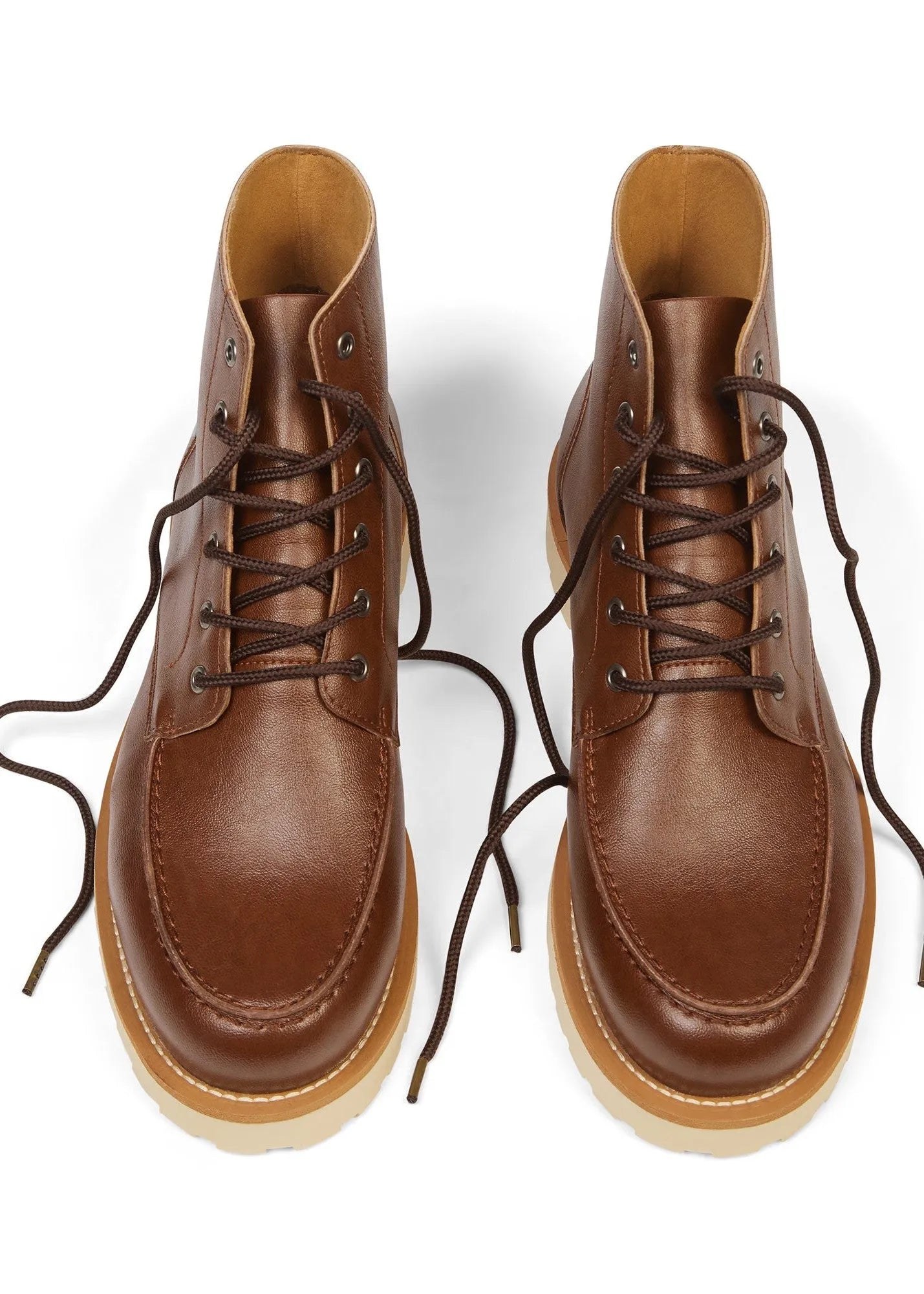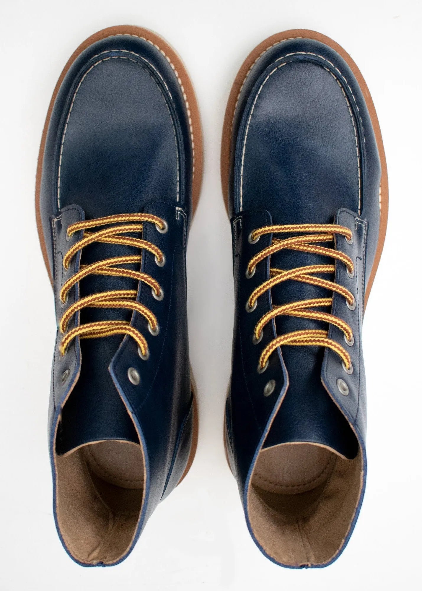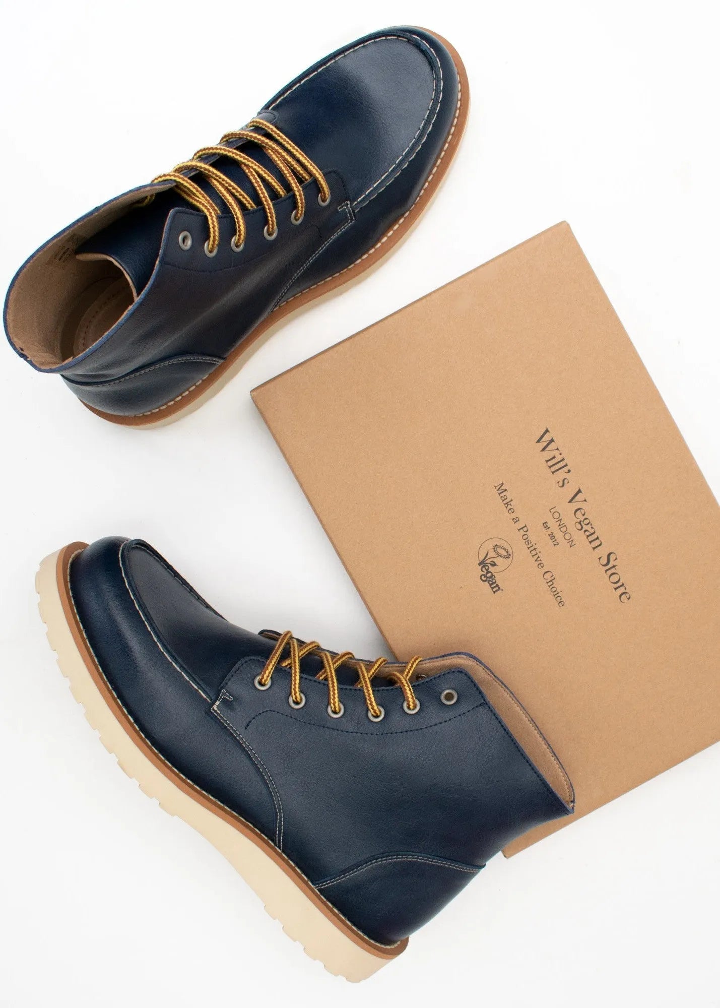 The substantial yet supple Italian vegan leather made with 69% bio-based content moulds to your feet over time, creating a customized fit. The thick recycled polyester laces are sturdy and classic, ensuring your boots stay snugly on your feet. The cushioned insoles and vegan suede lining provide comfort, even after a long day on your feet.