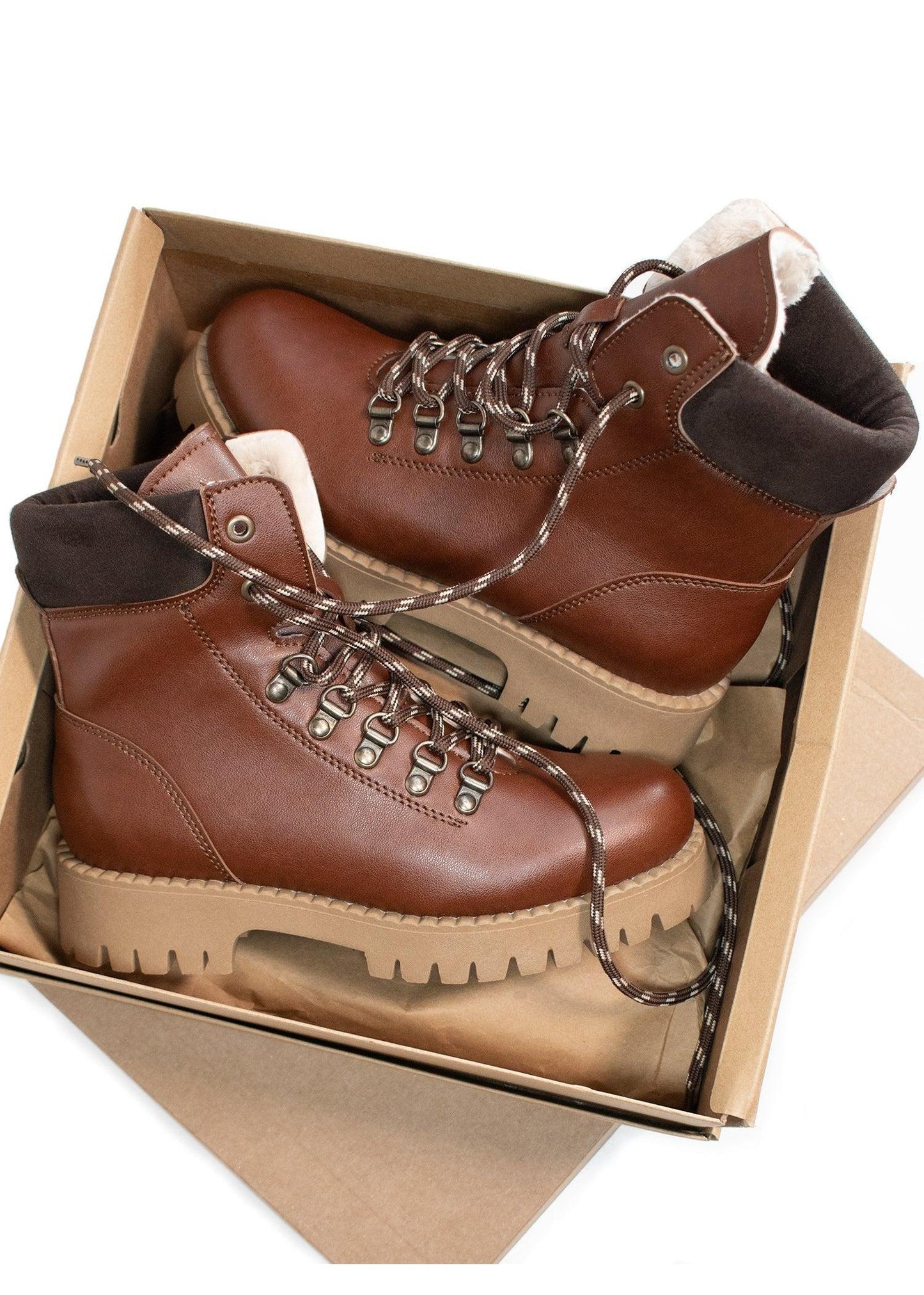 The water-resistant Italian vegan leather uppers (made from 69% bio-based content) are lined with Primaloft insulation made from 90% recycled content, keeping your feet warm in freezing conditions. Your feet are also kept cosy with a thick, cream colour soft vegan fur lining (made from 100% recycled PU, 100% RPU) that goes all the way down to your toes.