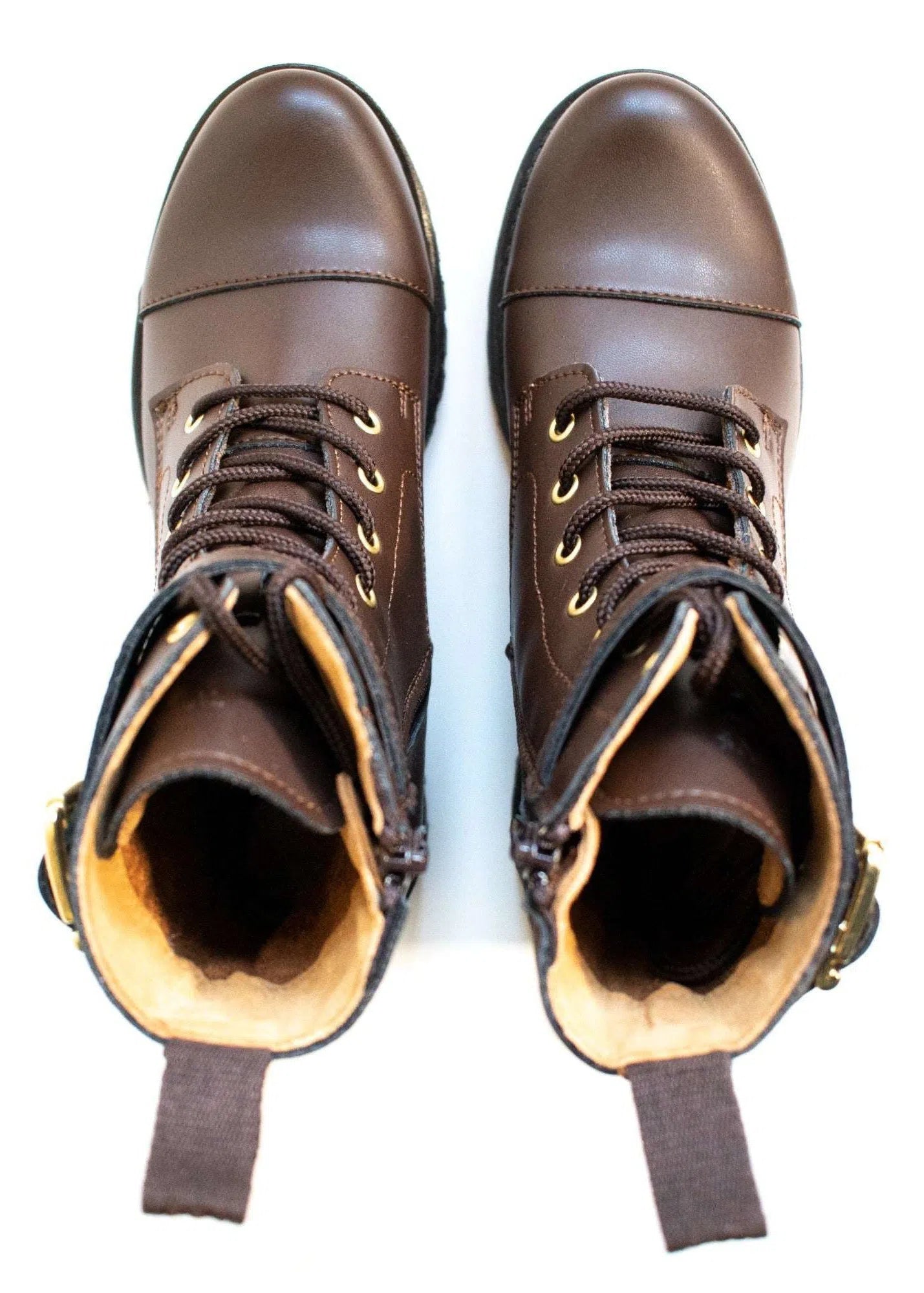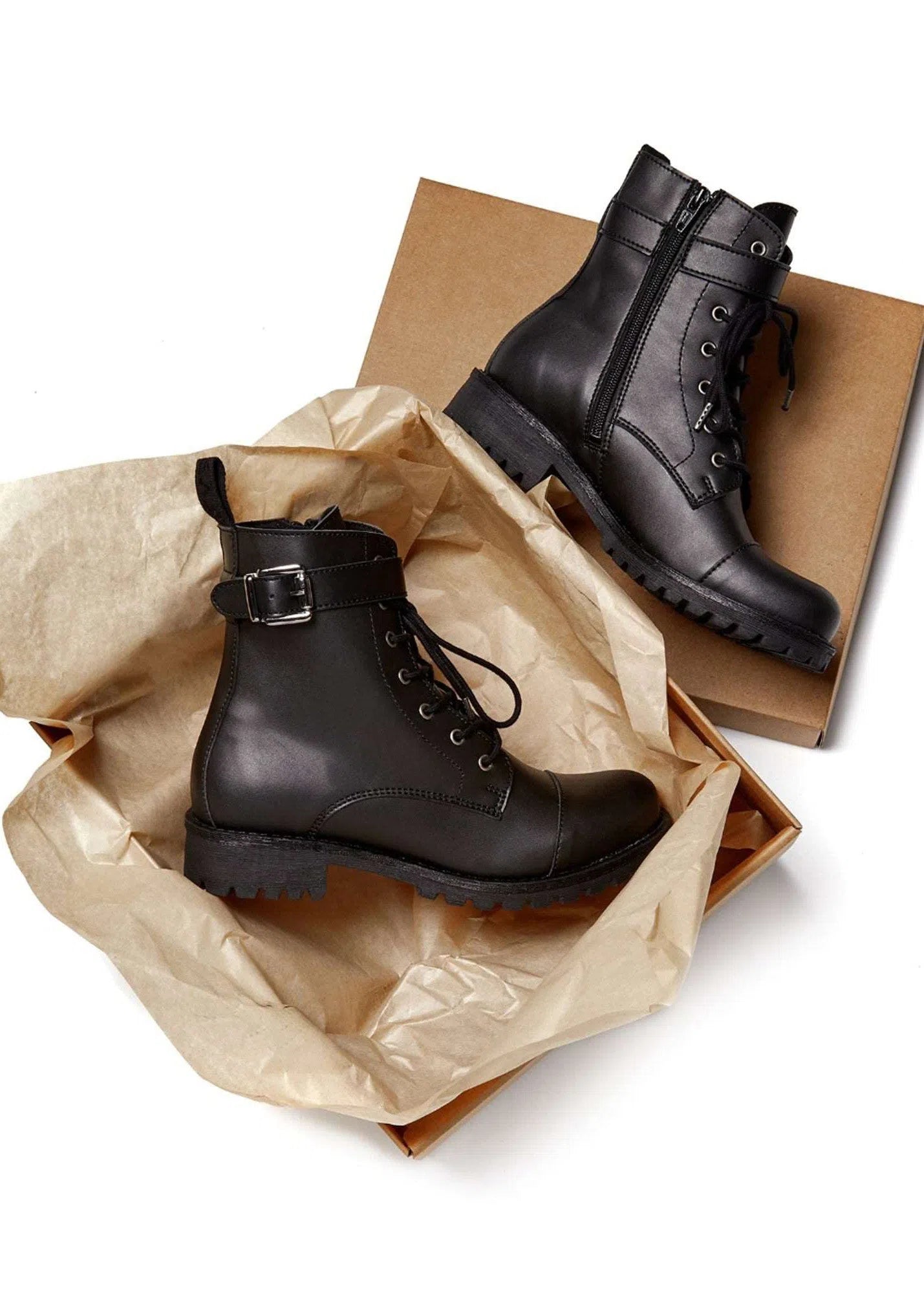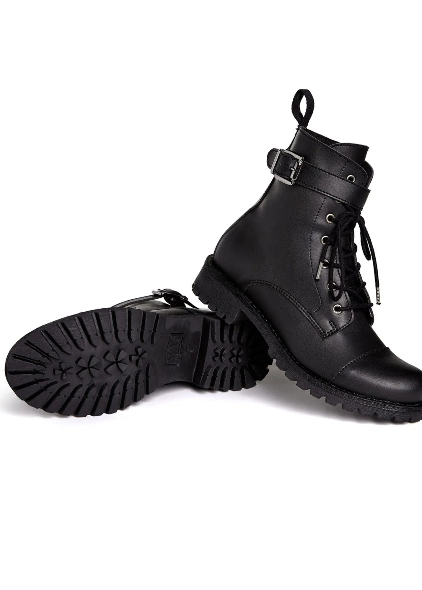 You can adjust the laces, to fit to suit, either tight so they hug your legs - or you can wear them loose. At the top sits a solid functional buckle which can be worn, done, or undone. If you like, keep these laced up and slip them on and off easily using the full-length zipper on the inside.