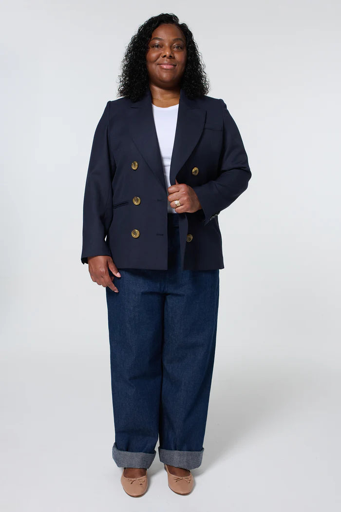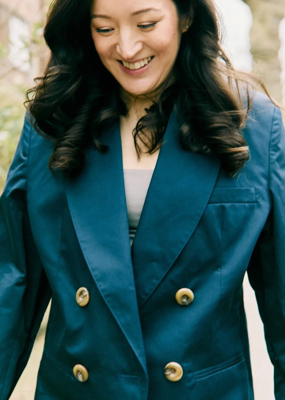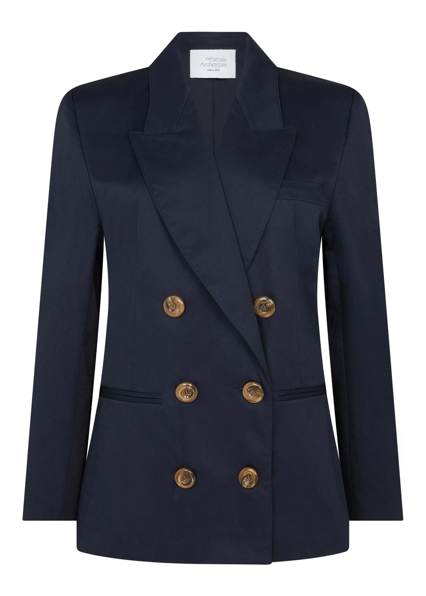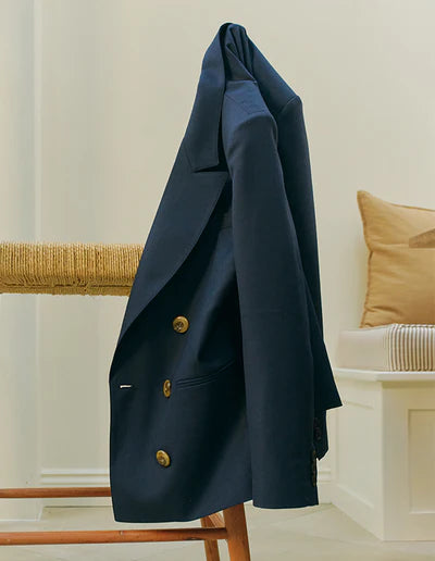 This double breasted blazer is made sustainably from luxury deadstock fabric with an 100% cotton lining compliant with leading Standard 100 OEKO-TEXⓇ 961665.O.