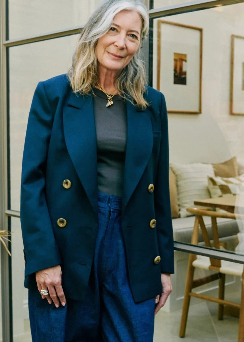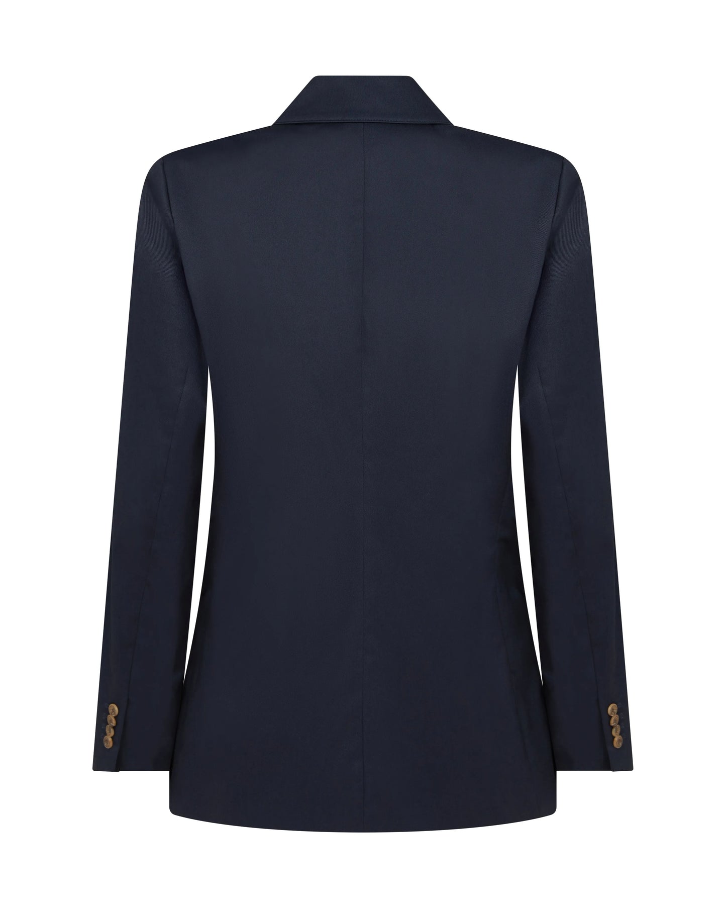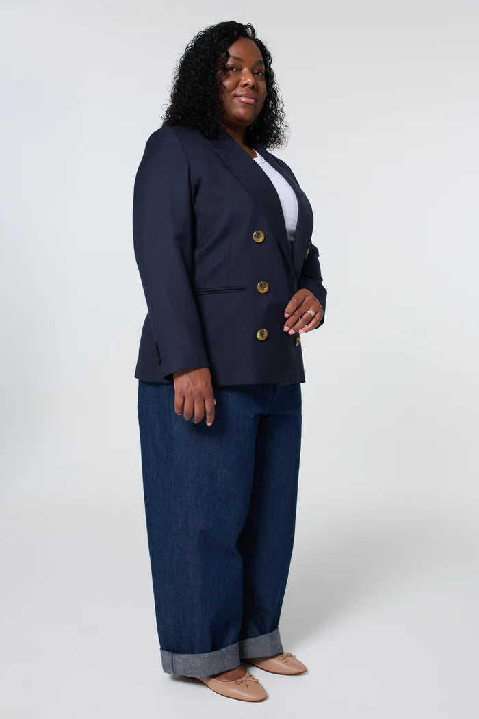 This double breasted blazer is made sustainably from luxury deadstock fabric with an 100% cotton lining compliant with leading Standard 100 OEKO-TEXⓇ 961665.O.