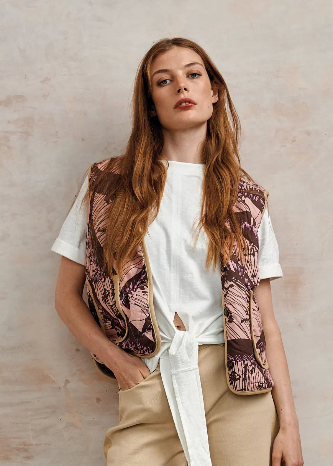 WAVE - Organic Cotton Reversible Gilet - Camel/Pink