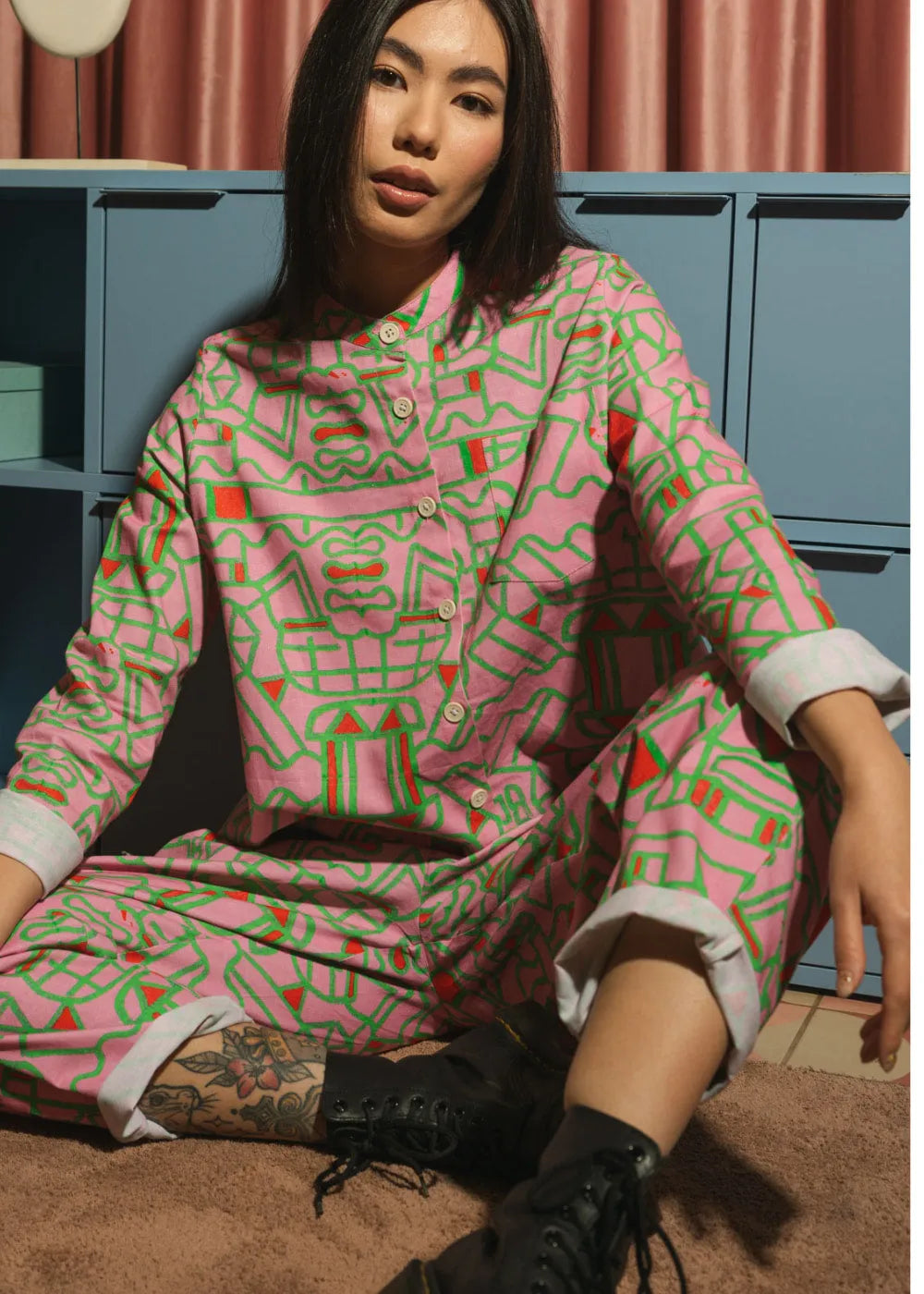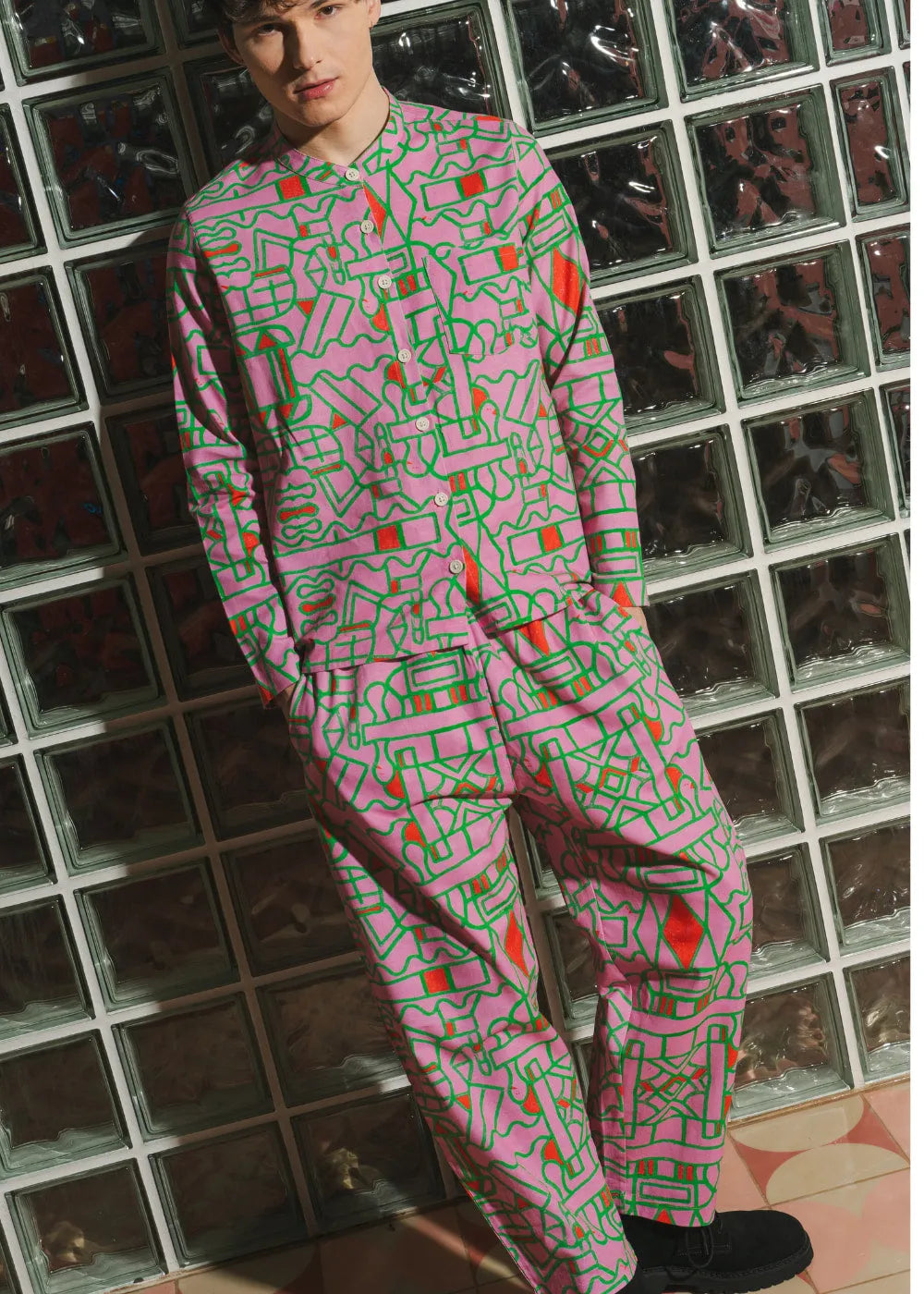 Organic Cotton & Linen Balloon Trousers in Blush Horizon