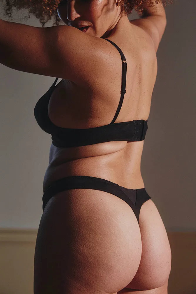 A luxuriously soft thong made from lightweight Portuguese Tencel and organic cotton jersey, with an organic bamboo front panel and insert detail on back,. To ensure an ultra soft feel against your skin, Wildness have covered the elastic at the back of thongs with superlight cotton and tencel jersey & have a fully sewn gusset. Cut to flatter with a subtle mid rise front.