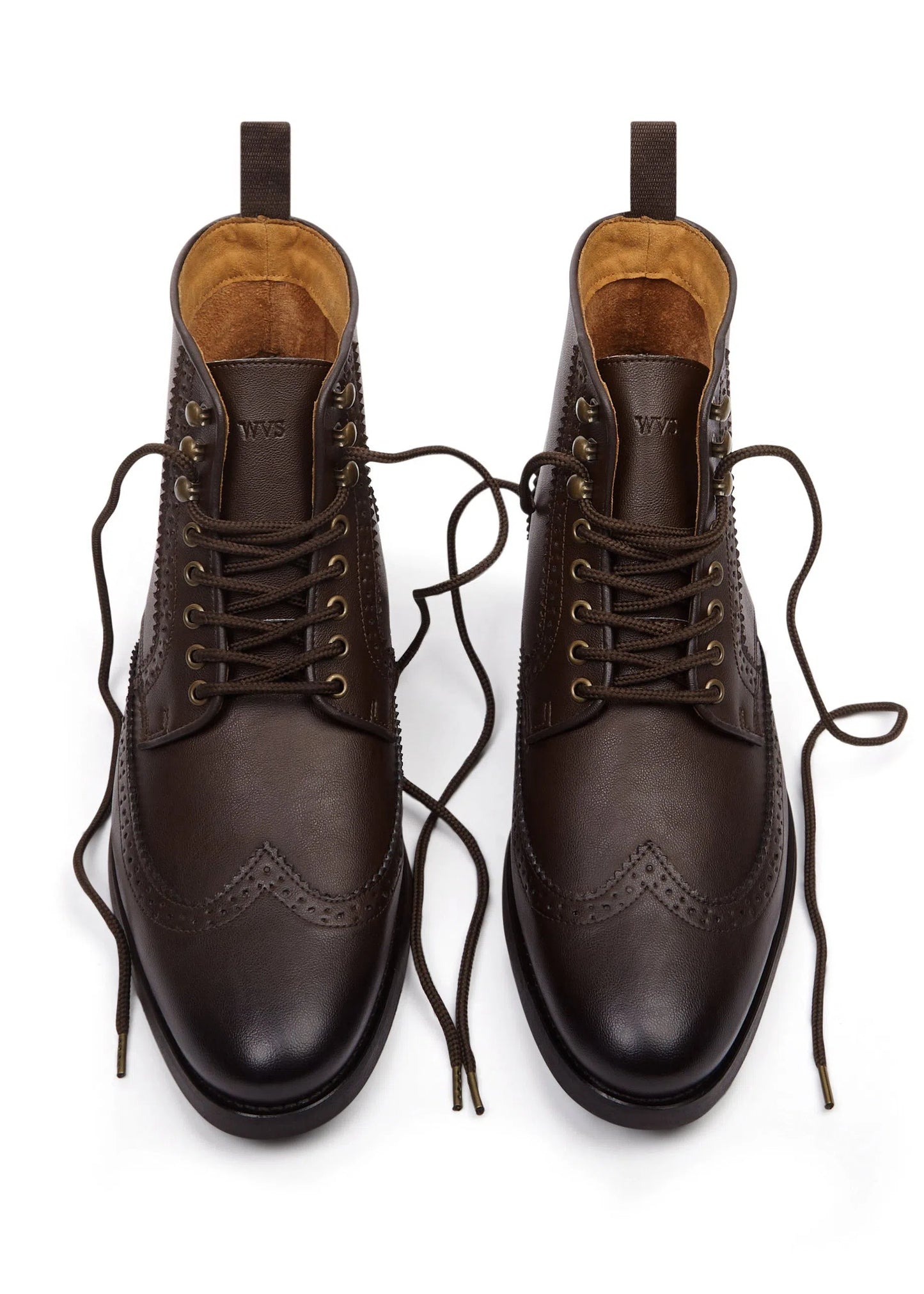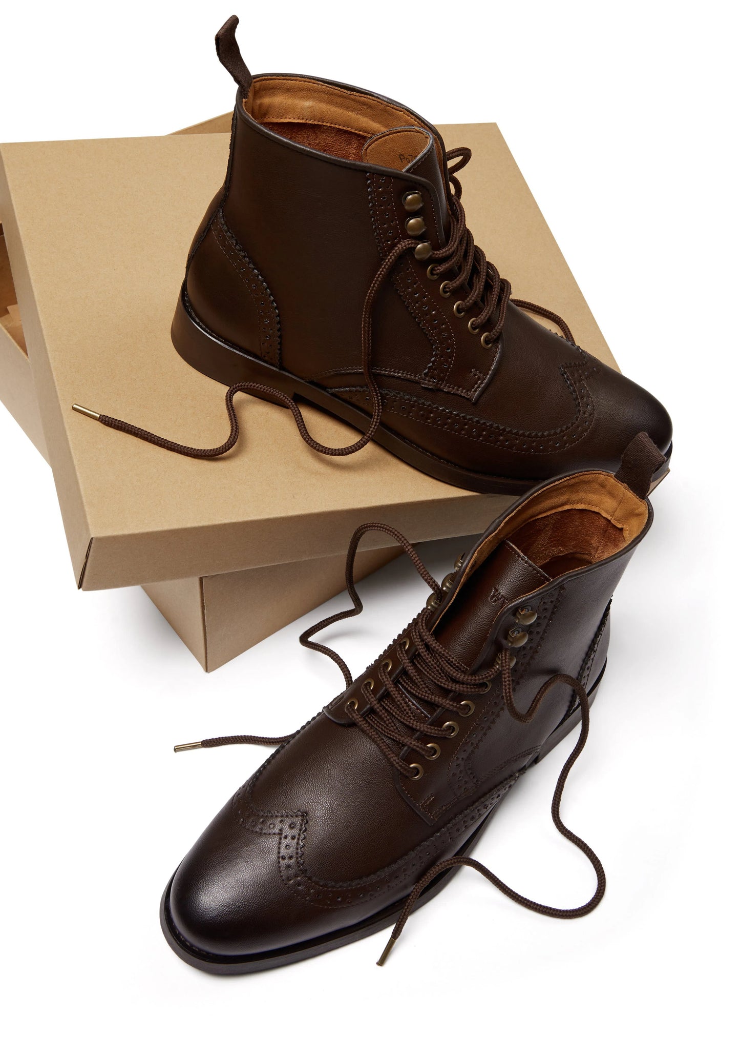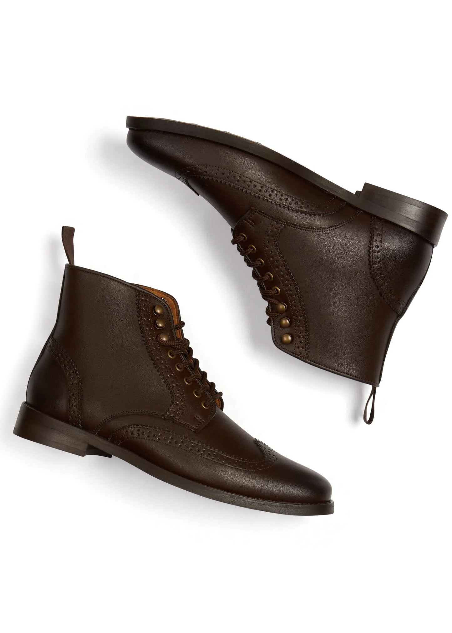 These classic Brogue Boots are made from 69% bio-based vegan leather and lined with two types of soft vegan suede, creating a lovely place to nestle your feet.