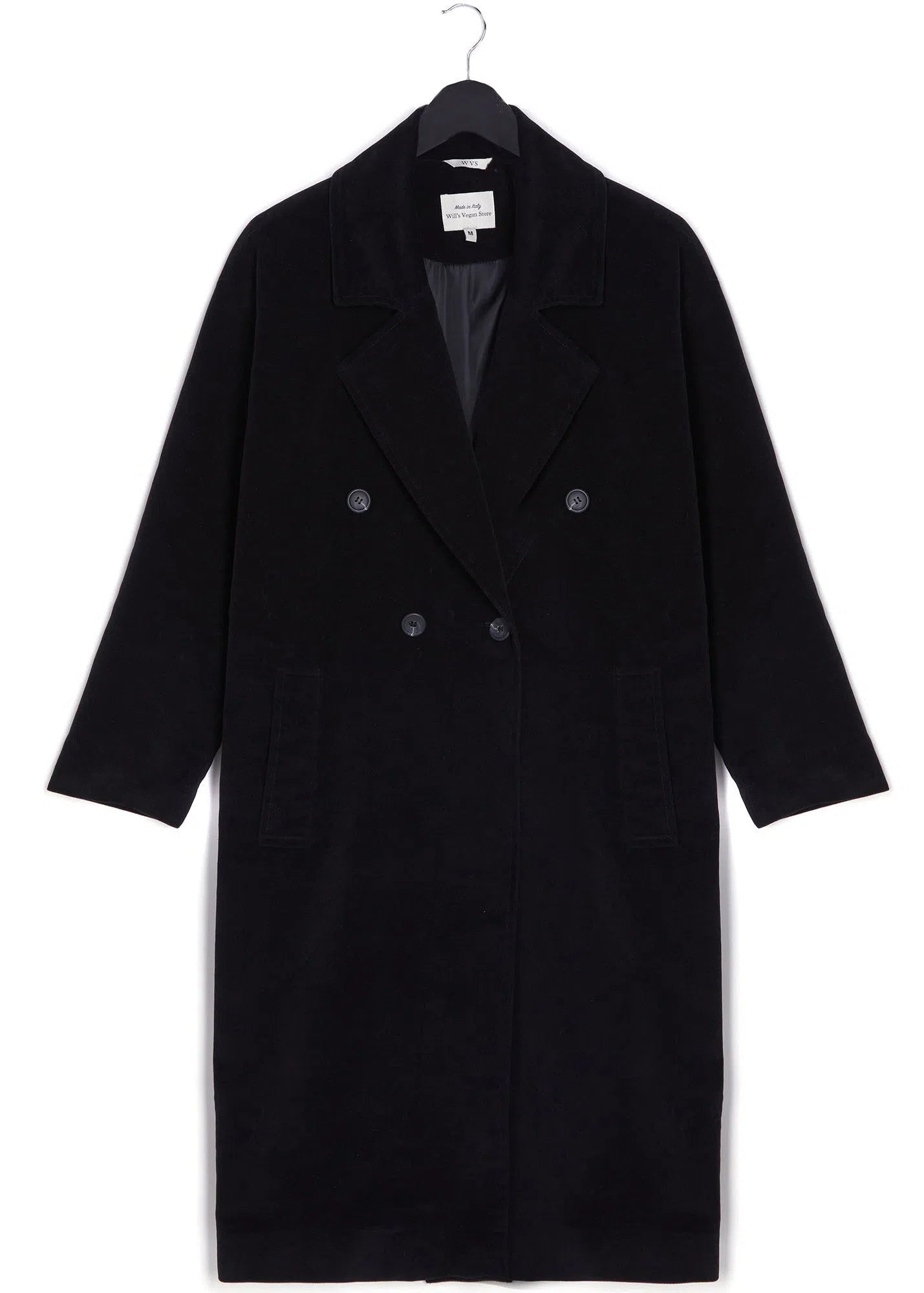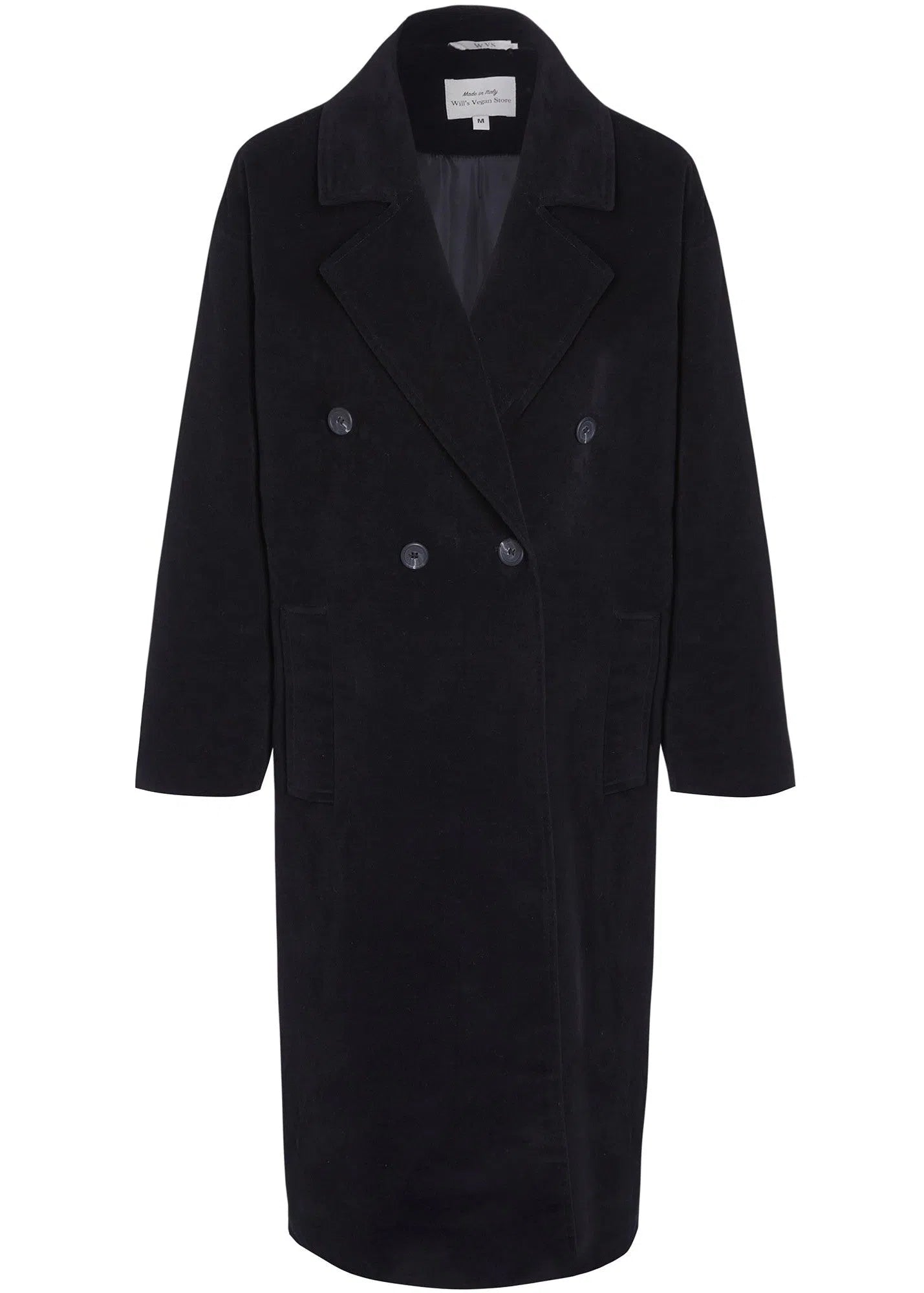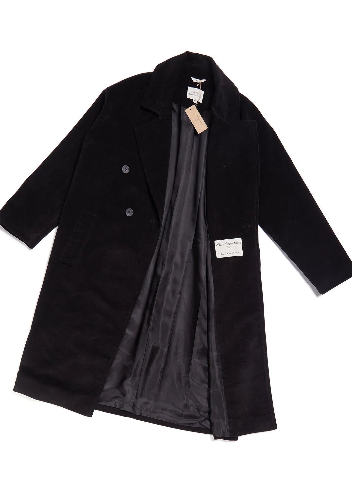 This understated and sophisticated coat is a timeless style you're sure to wear for years. Tailored in Italy from “vegan wool” and designed in a loose, double-breasted silhouette, subtly structured with shoulder padding. To keep you warm there is a 60g thermal insulated lining. The front of the jacket is fastened with four matt finish recycled buttons. Italian made REACH certified viscose lining ensures smooth layering. You can put your carry essentials into the two deep slip pockets.