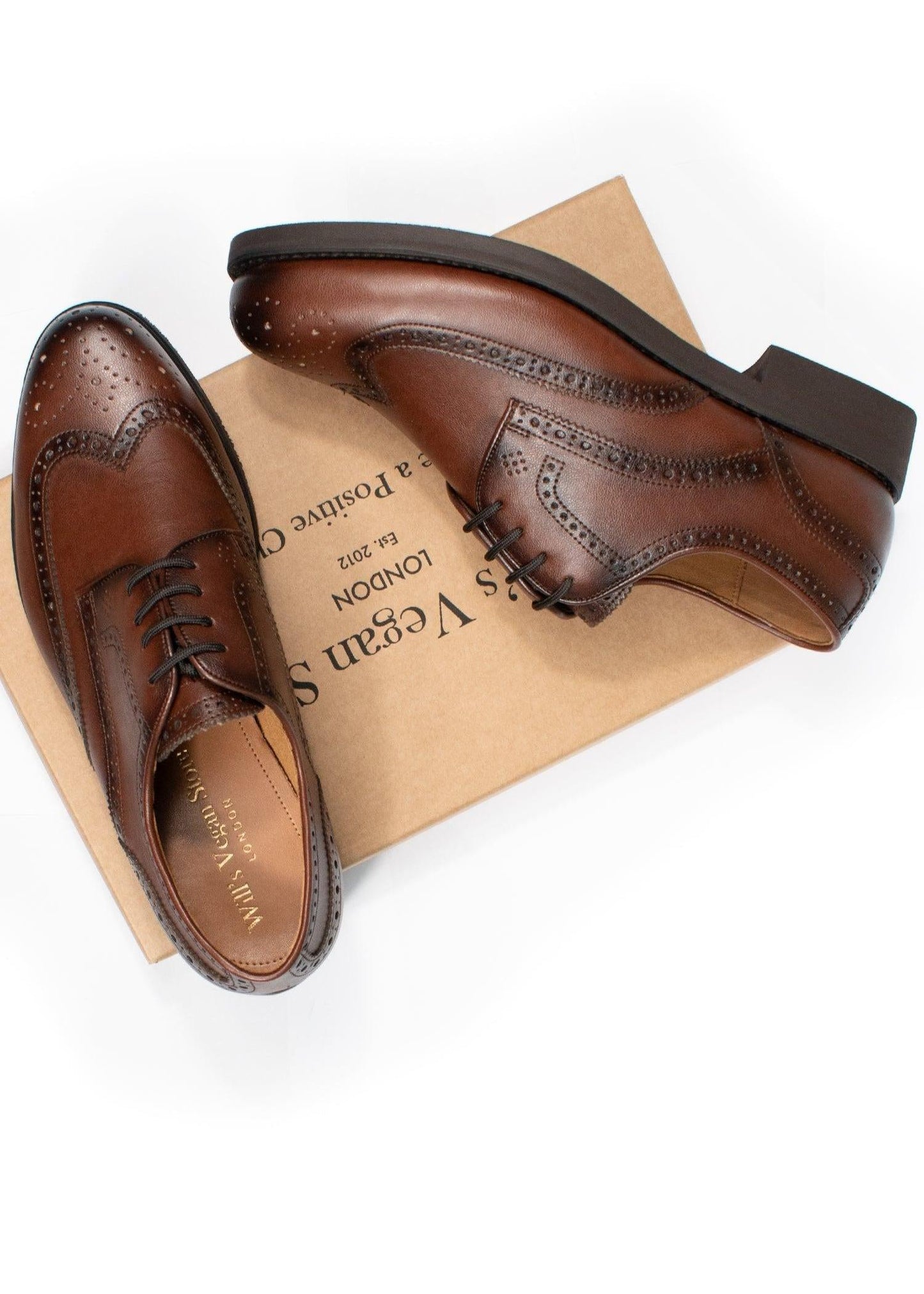 The uppers are cut from WVS signature Italian vegan leather in a warm chestnut tone, made with 69% bio-based content. Each pair is hand-finished in Portugal by the same family-owned workshop we have worked with since 2015. Subtle broguing adds character while keeping the silhouette clean and versatile.