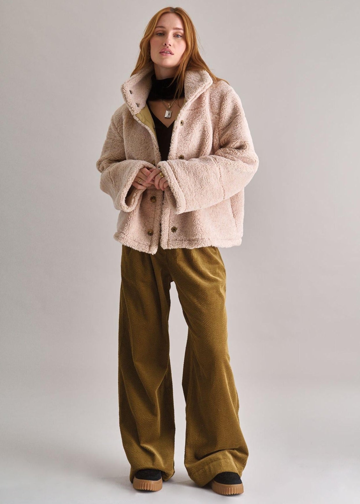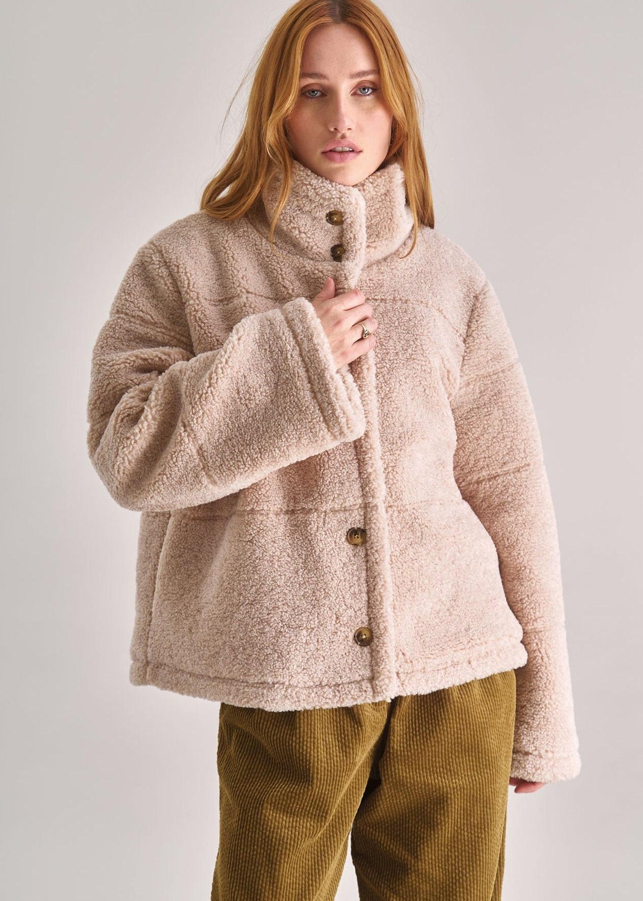 The ISOBEL Recycled PET Jacket in Sand blends sustainability with style. Crafted from 100% recycled PET and 100% organic cotton, it offers a soft, breathable feel while respecting the planet. Its oversized boxy fit and high collar provide a relaxed yet distinct silhouette, perfect for layering. Finished with metal press stud fastenings from a vegan, Sedex-audited factory, this jacket combines ethical production with durable design. Embrace eco-conscious fashion with a versatile piece that feels as good as it looks.