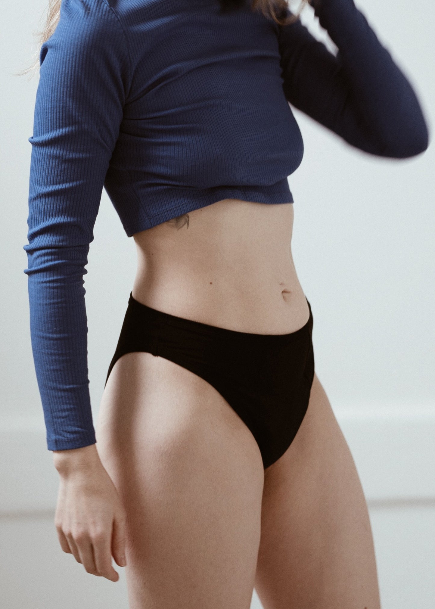 is for the run-up to your period days, the ‘is-my-period-over-yet’ days, light bleed or leak days, heavy discharge, or back-up while wearing the menstrual cup or a tampon. It is basically the revolutionary built-in panty liner, just the much better version where nothing moves around or folds and no glue sticks to your skin. You literally feel like you’re wearing regular underwear, zero thickness, full flexibility, and then you have the added benefit of feeling protected. We love this absorbency that works for so many different uses.