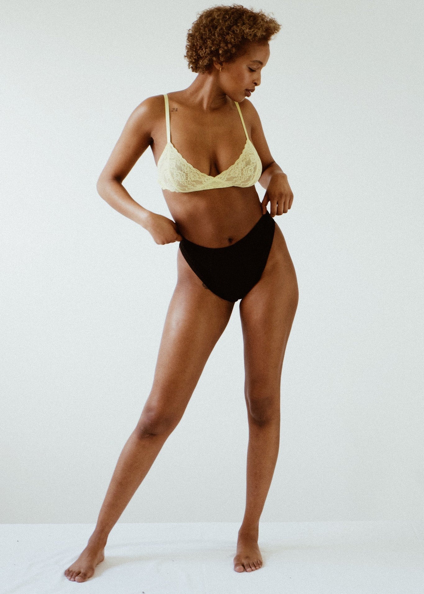 Cheeky high-cut style, mid-waisted, and with soft bound seams.
