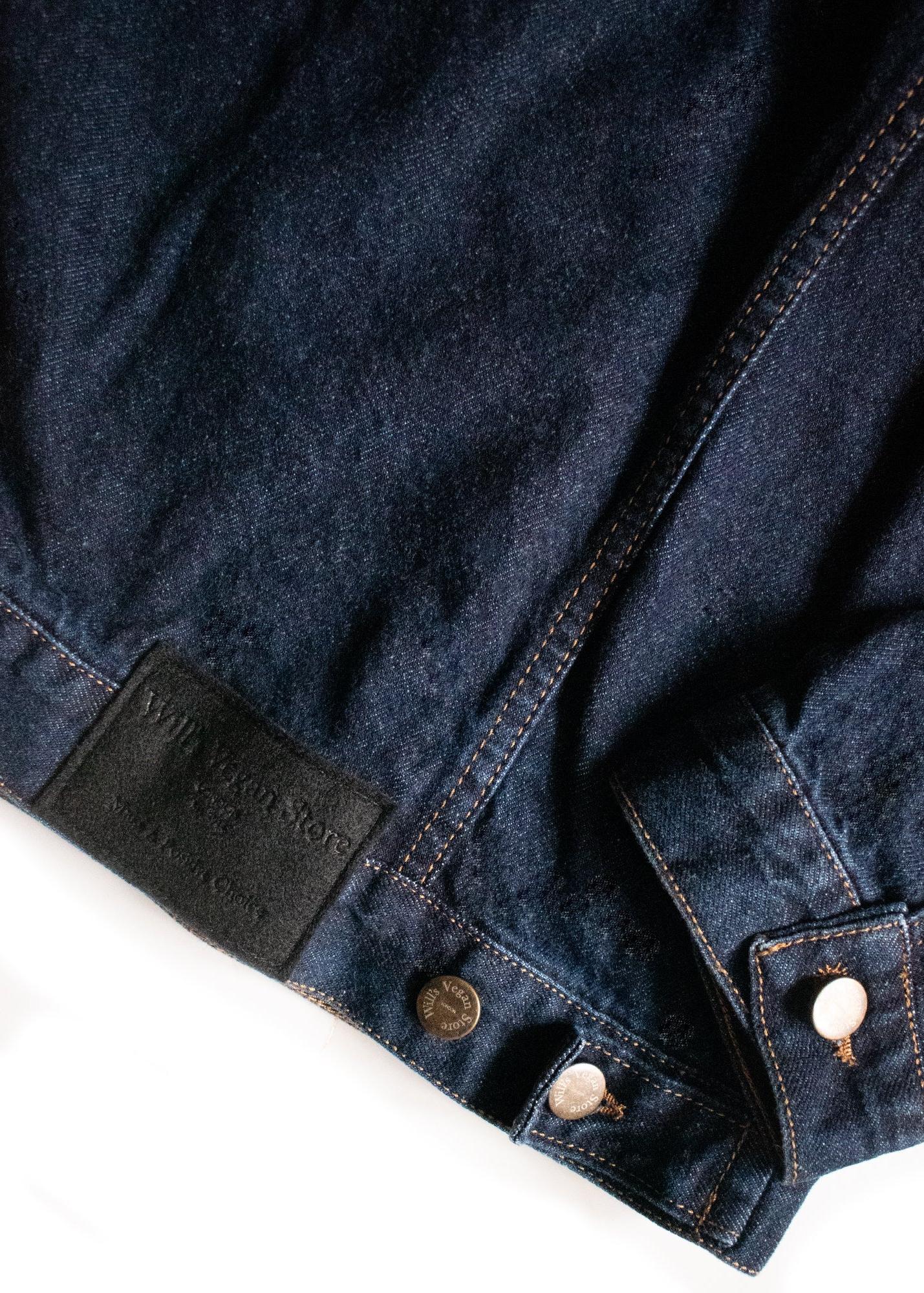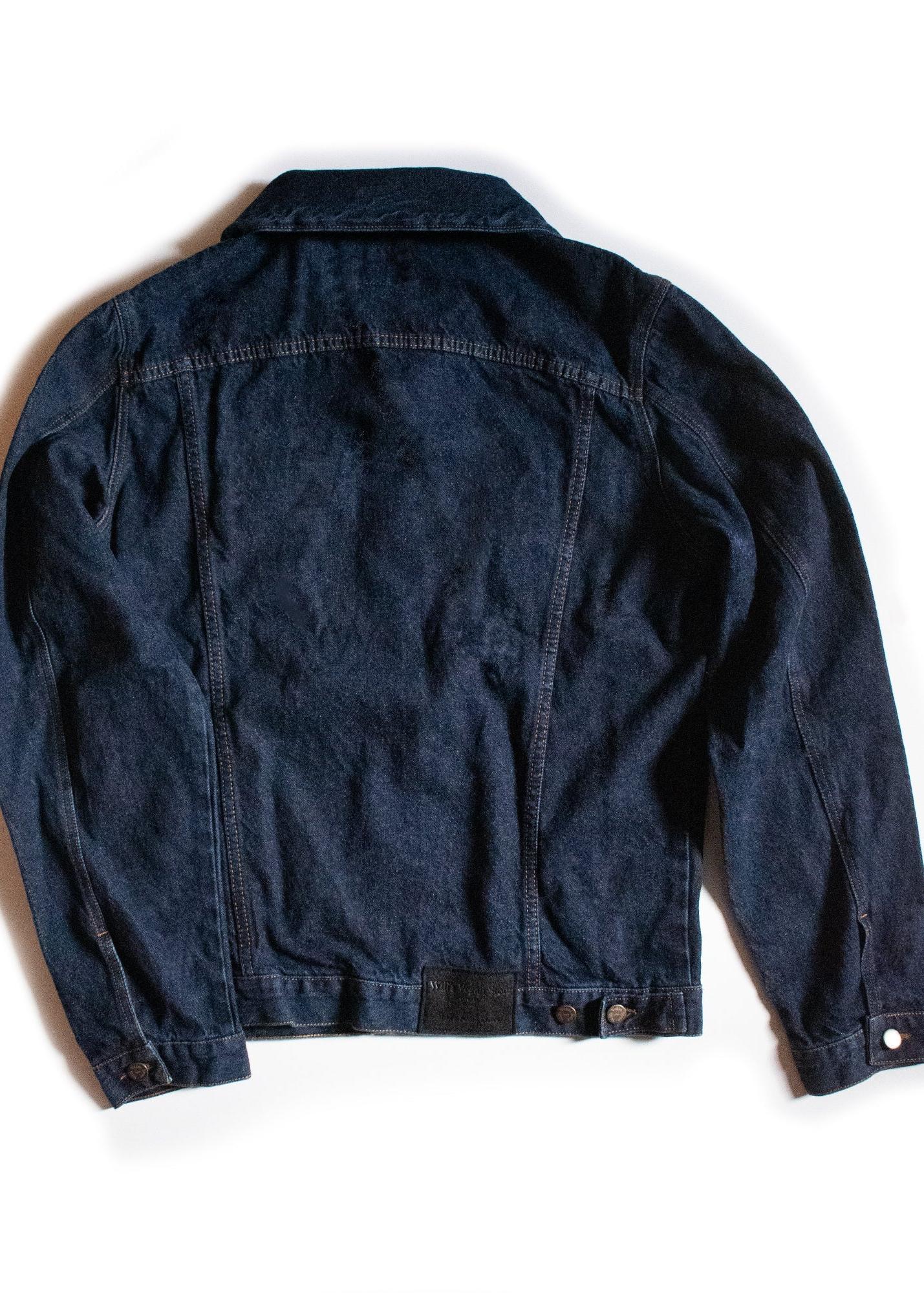 We used a heavy-weight dark blue version of our denim to make this button-up denim jacket. It's been made in small batches in Italy by a factory specialising in denim and then stone-washed to give its classic worn-out look.